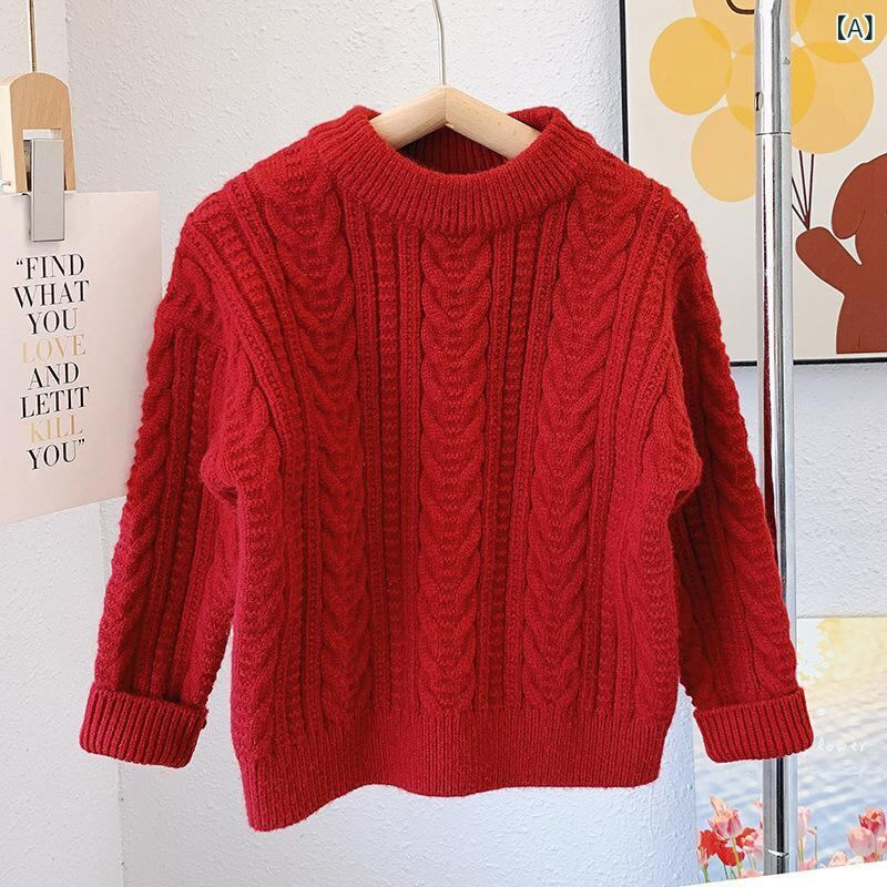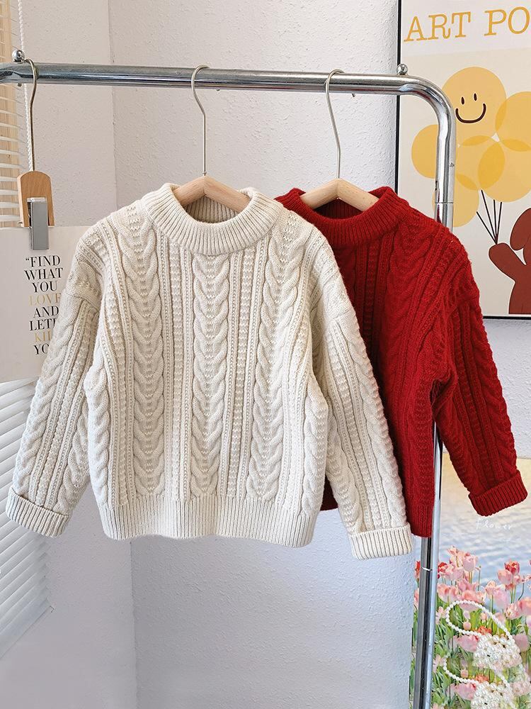 ニット キッズ 女の子 冬用 セーター ケーブル編み 暖かい 伸縮性 ゆったり かわいい カジュアル アイボリー レッド 100cm 110cm 120cm 130cm 140cm 150cm 160cm