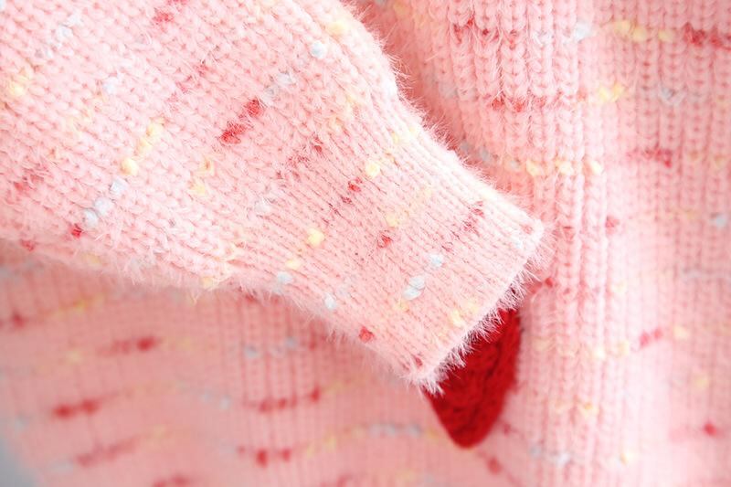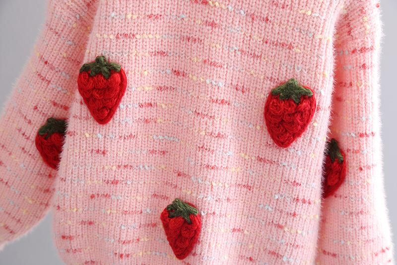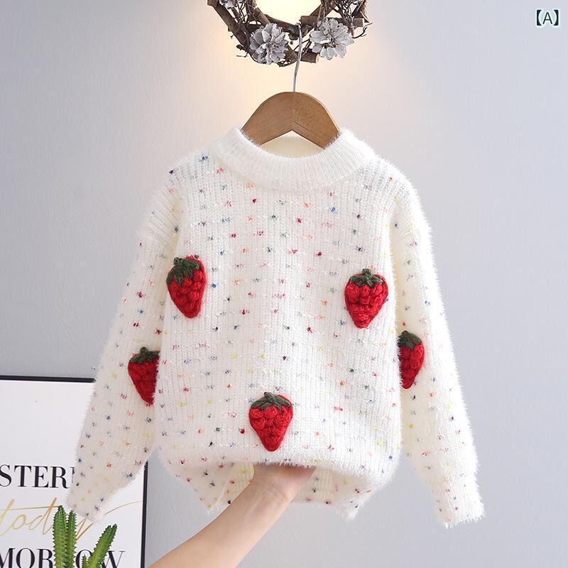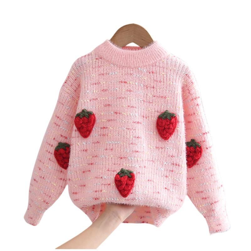 ニット・セーター キッズ 女の子 子供服 トップス 長袖 プルオーバー いちご柄 かわいい ガーリー カジュアル ニットセーター 春秋冬 ピンク系 オフホワイト 裏起毛 90 100 110 120 130 140 150