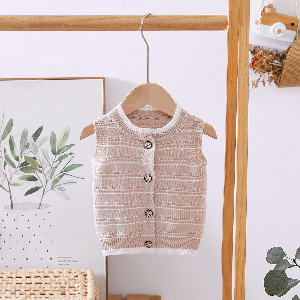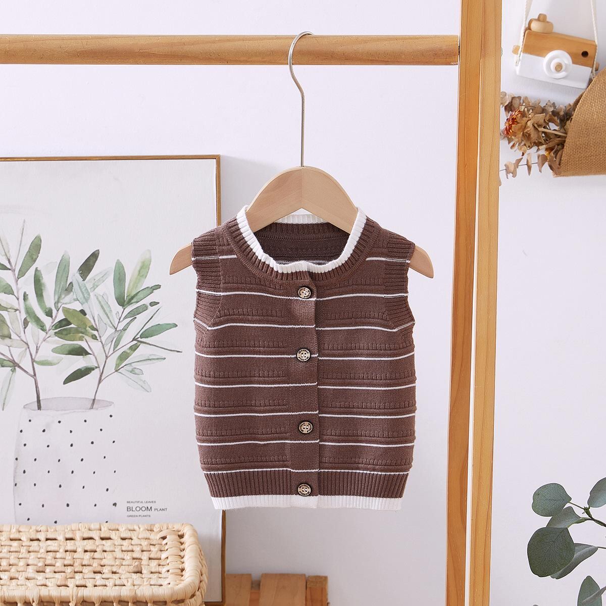 子供服 ニットベスト 春秋 男女 ベビー ストライプ カーディガン 韓国風 ノースリーブ セーター 小童 幼児 普段使い おしゃれ着 防寒着