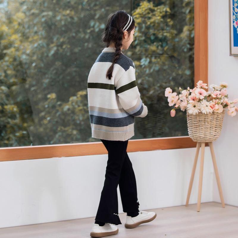 子供服 セーター 女の子 ニット カーディガン 春秋 ニット 花柄 ゆったり かわいい 普段使い 長袖 丸首 トップス 接触冷感 吸湿速乾 120 130 140 150 160 170