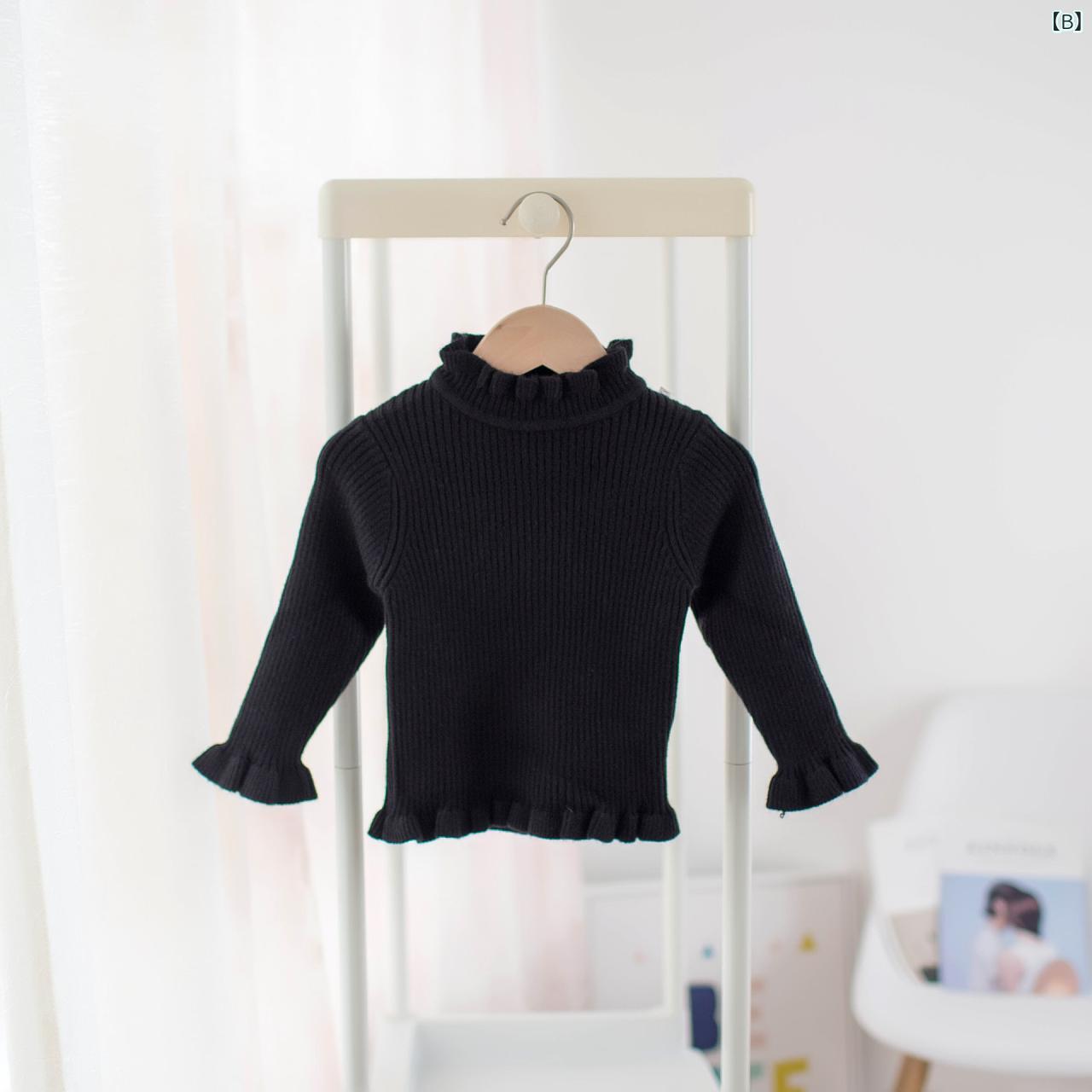 子供服 ニット・セーター 女の子 幼児 長袖 トップス 秋冬 無地 インナー 丸首 かわいい おしゃれ 普段使い お出かけ着 グレー ブラック ベージュ ピンク系 カーキ 綿 アクリル