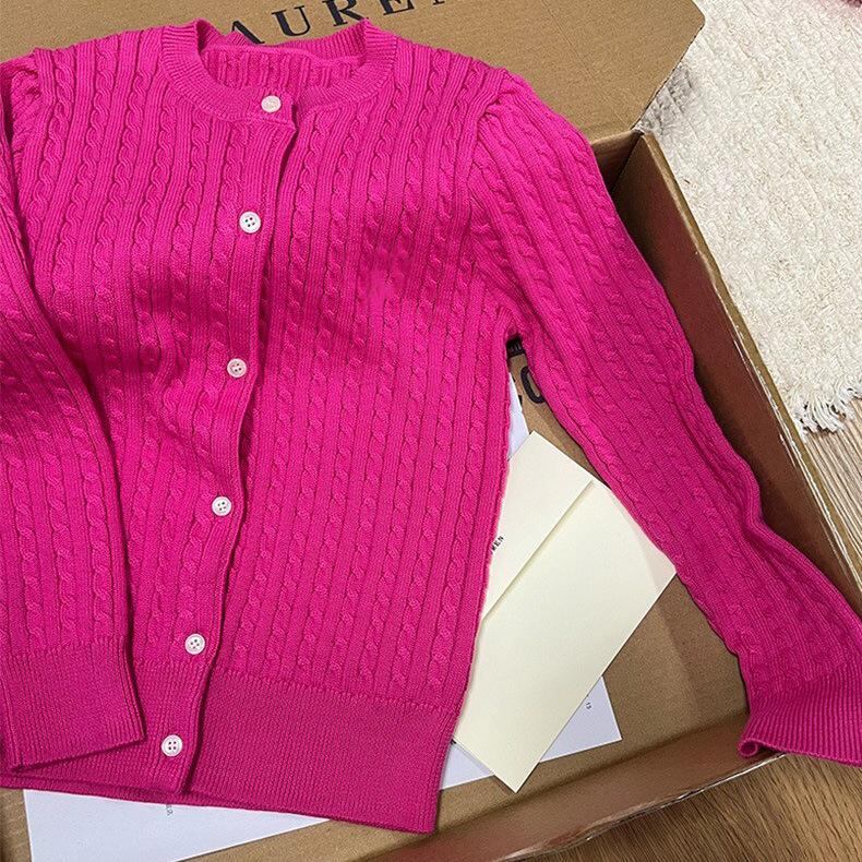 ・カラー: 紺色ケーブルニットカーディガン, ベビーピンクケーブルニットカーディガン, ドラゴンフルーツホワイト刺繍カーディガン, ドラゴンフルーツネイビー刺繍カーディガン, 黄色ケーブルニットカーディガン
