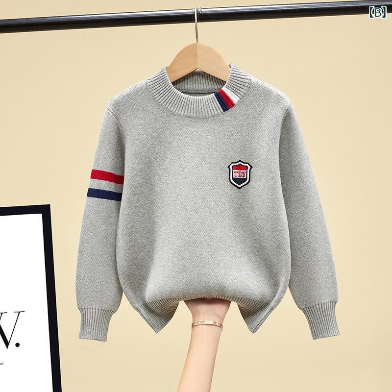 子供 ニット/セーター 男の子 秋冬 裏起毛 厚手 トップス 子供服 カジュアル 普段使い 遊び着 紺 灰色 青