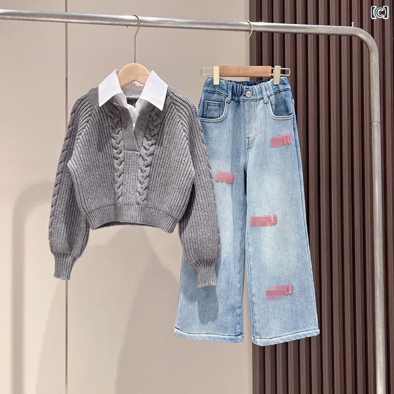 ニット セーター 女の子 キッズ 大童 ニットトップス シャツ襟付き 長袖 プルオーバー 秋冬 普段使い 通学着 ピンク系 グレー 咸菜グリーン 120 130 140 150 160 170
