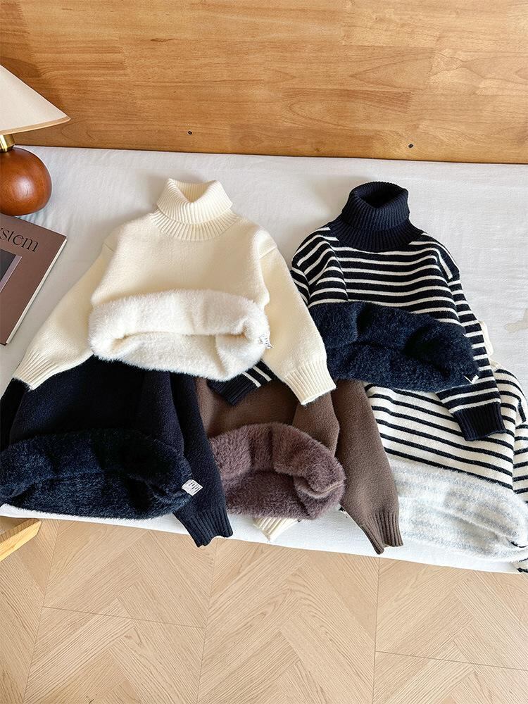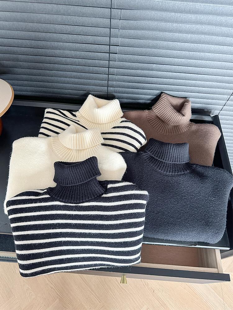 子供服 ニット セーター 秋冬 高襟 キッズ 男の子 女の子 厚手 ボーダー柄 無地 普段使い 韓国風 90cm 100cm 110cm 120cm 130cm 140cm 150cm