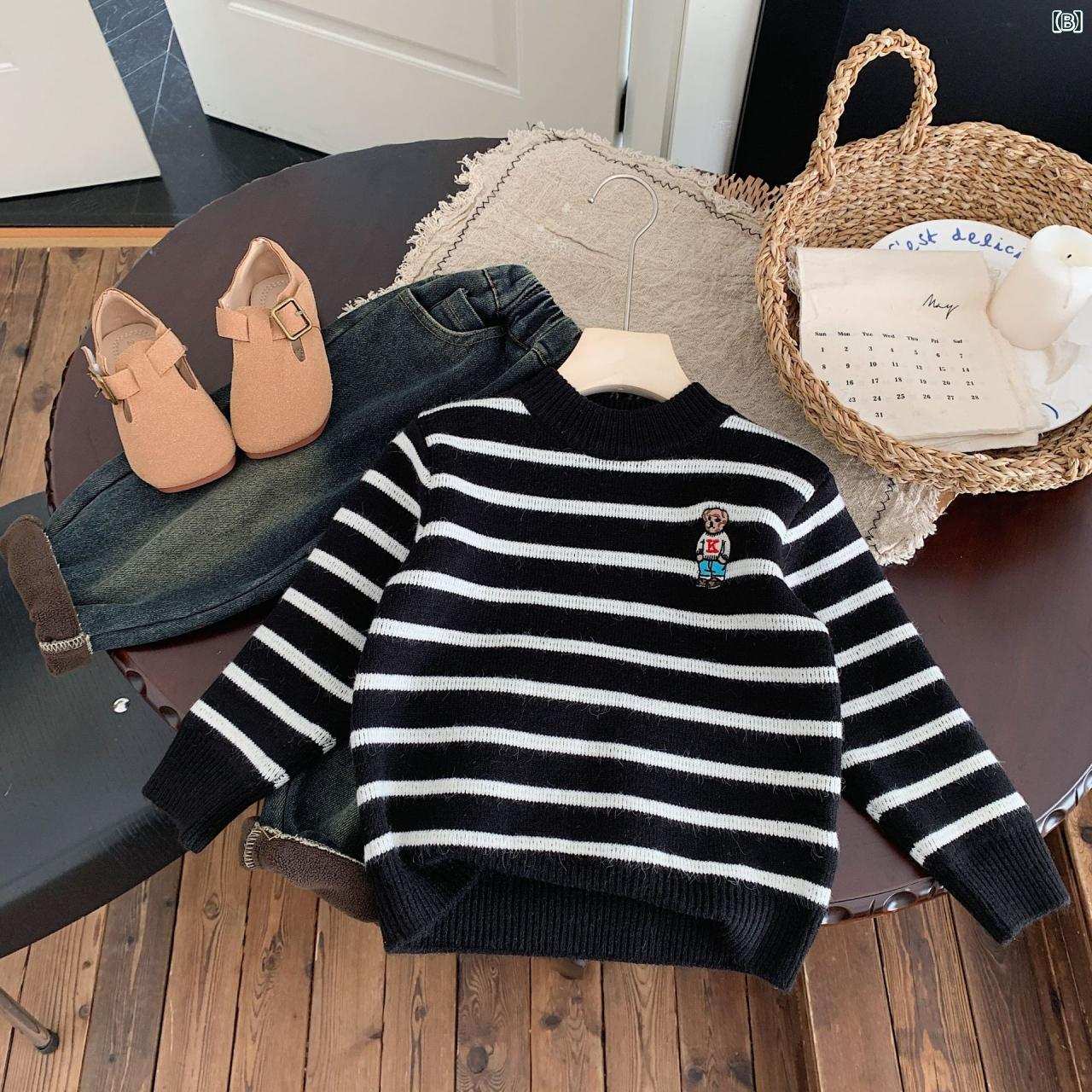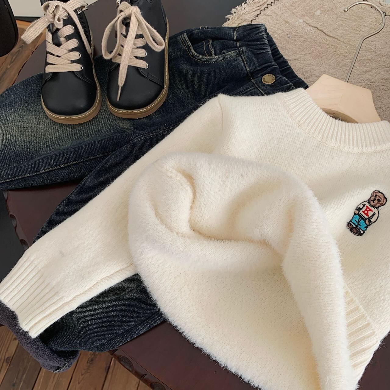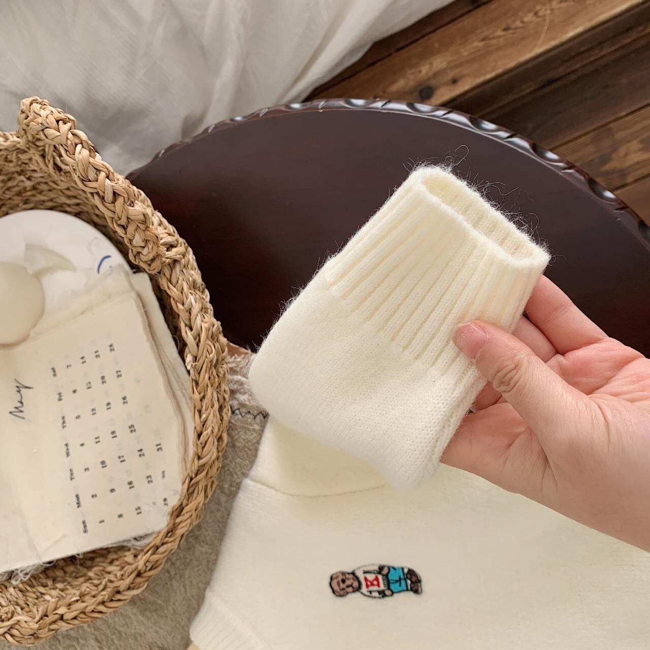 子供服 セーター キッズ 冬服 韓国風 男の子 女の子 刺繍 小熊 ベア 裏起毛 あったか インナー セーター 90 100 110 120 130 140cm ブラック ベージュ
