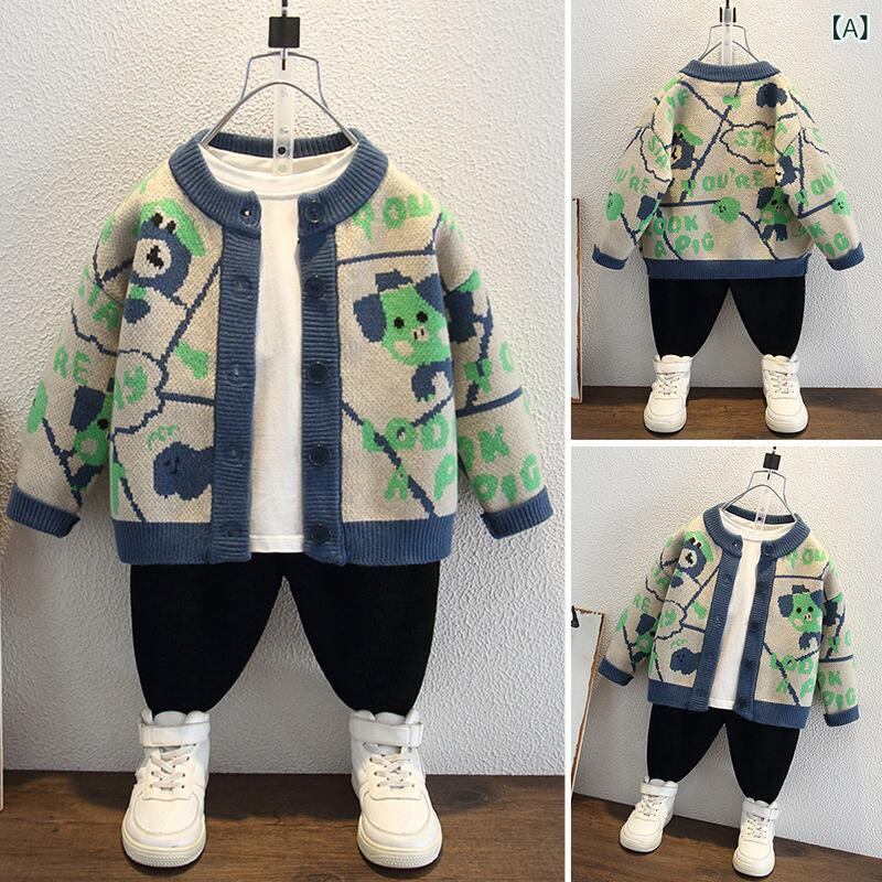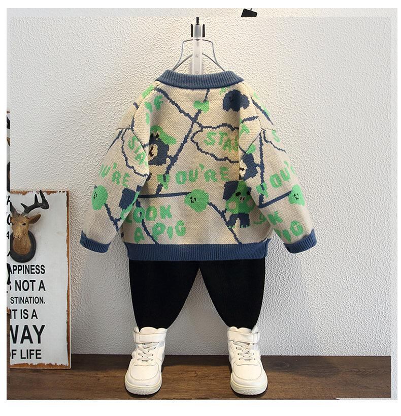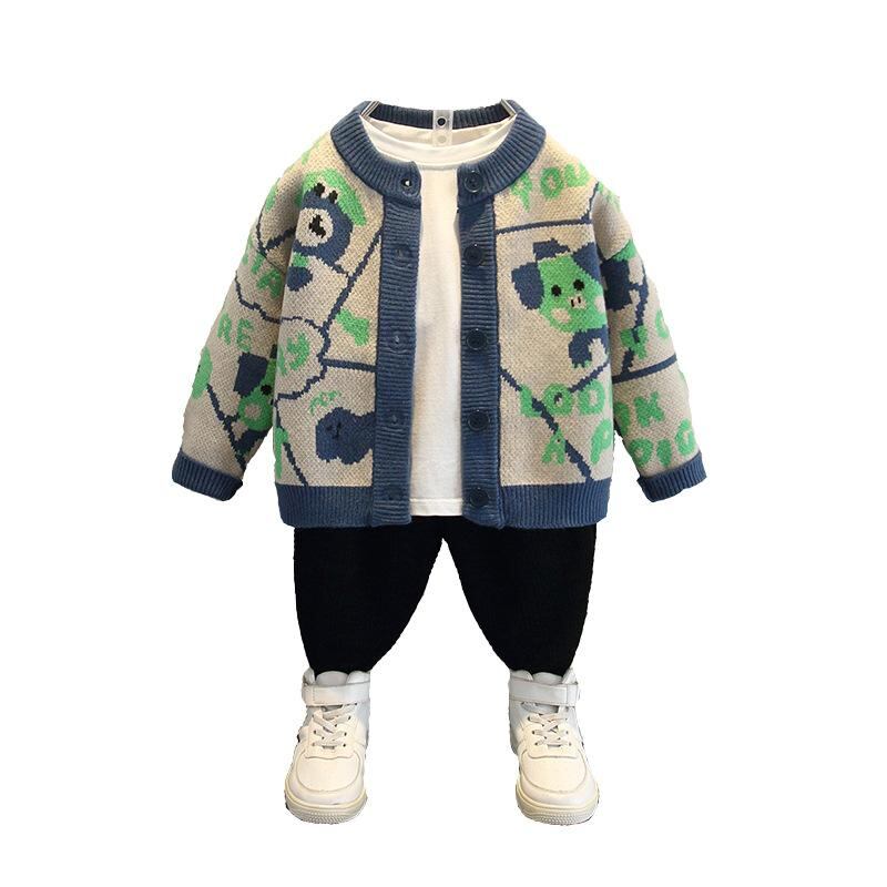 子供服 セーター 男の子 秋物 ニット カーディガン 長袖 韓国風 トップス ボーイズ 子供 キッズ 3歳 4歳 5歳 6歳 7歳 8歳 小学生 普段着 かわいい オシャレ 青色