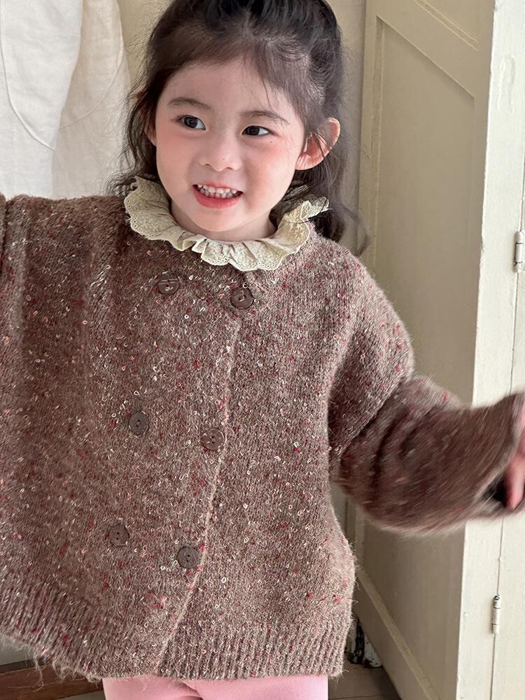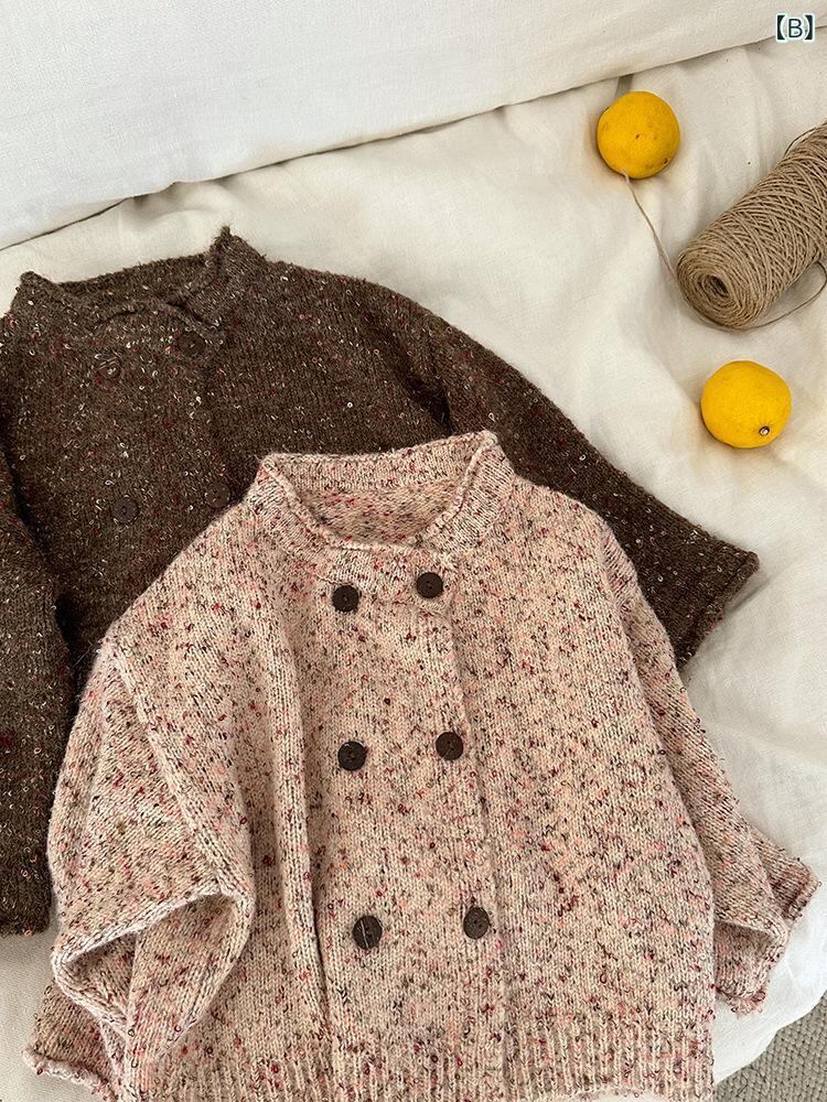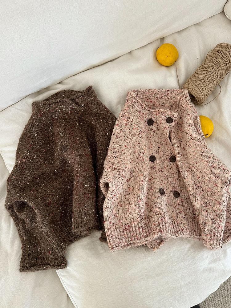 ニット キッズ 女の子 カーディガン 秋冬 子供 ダブルボタン セーター 長袖 普段着 ベビー 防寒 かわいい 暖か ピンク系