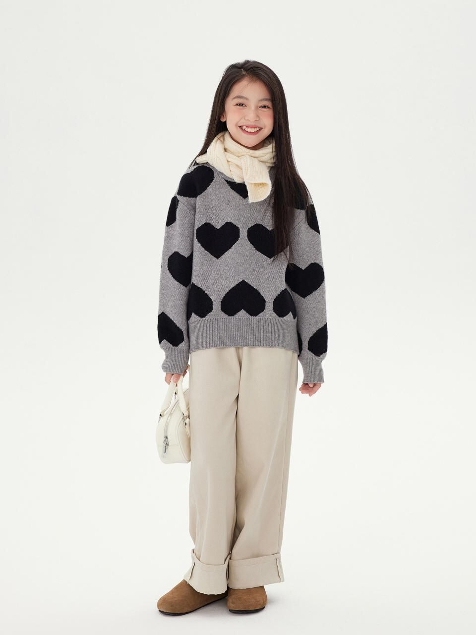 子供服 ニット セーター 女の子用 秋冬 長袖 厚手 丸首 ゆったり 暖か かわいい トップス グレー 120cm 130cm 140cm 150cm 160cm 170cm