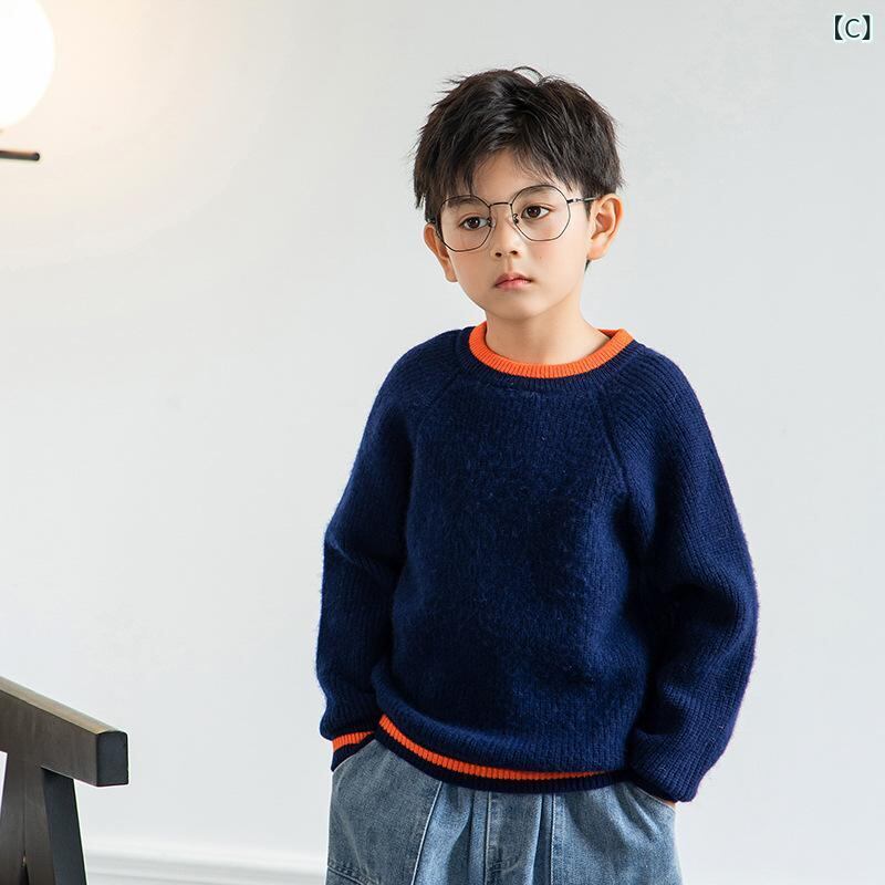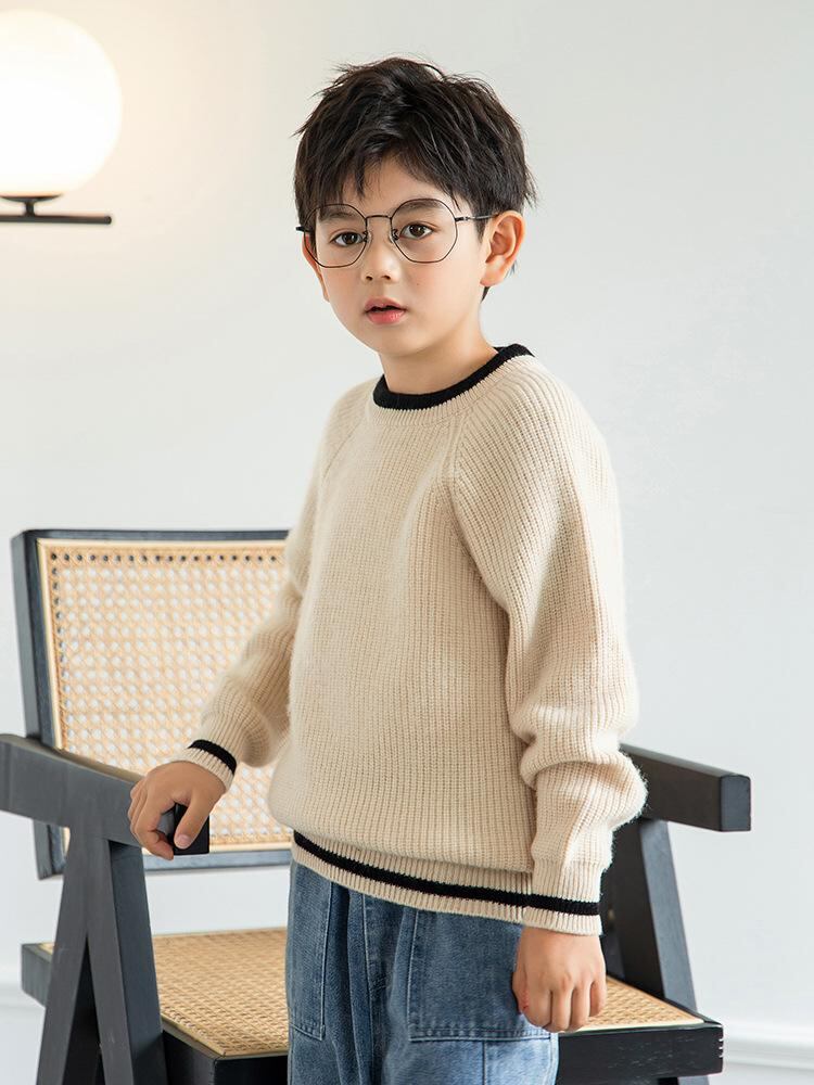 ニット キッズ セーター 男の子 ウール 100% 子供服 切り替え トップス 秋冬 あったか 防寒 長袖 カジュアル おしゃれ ラウンドネック