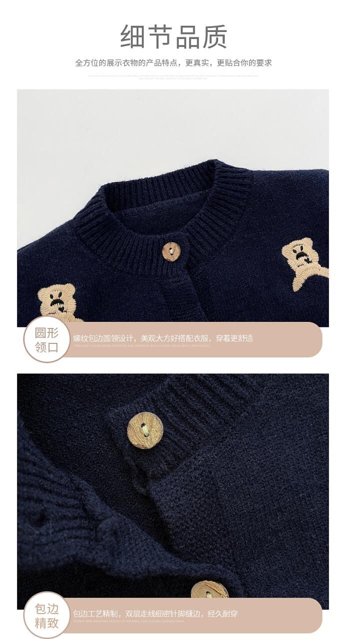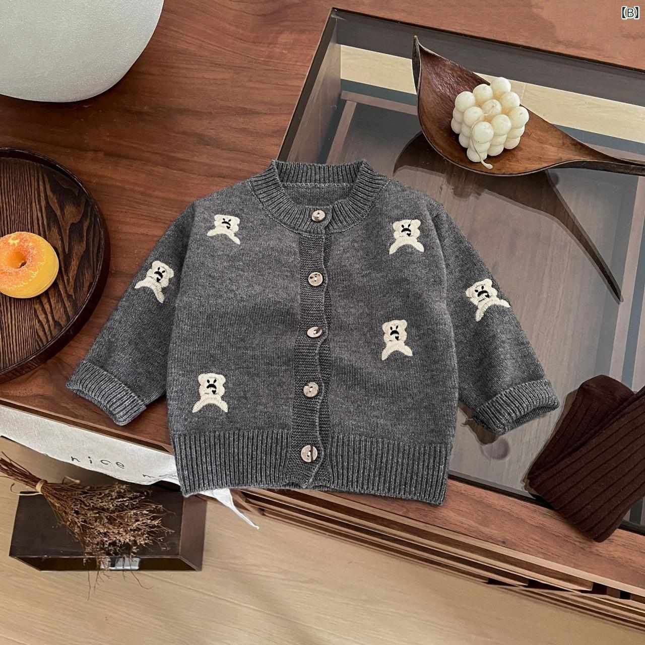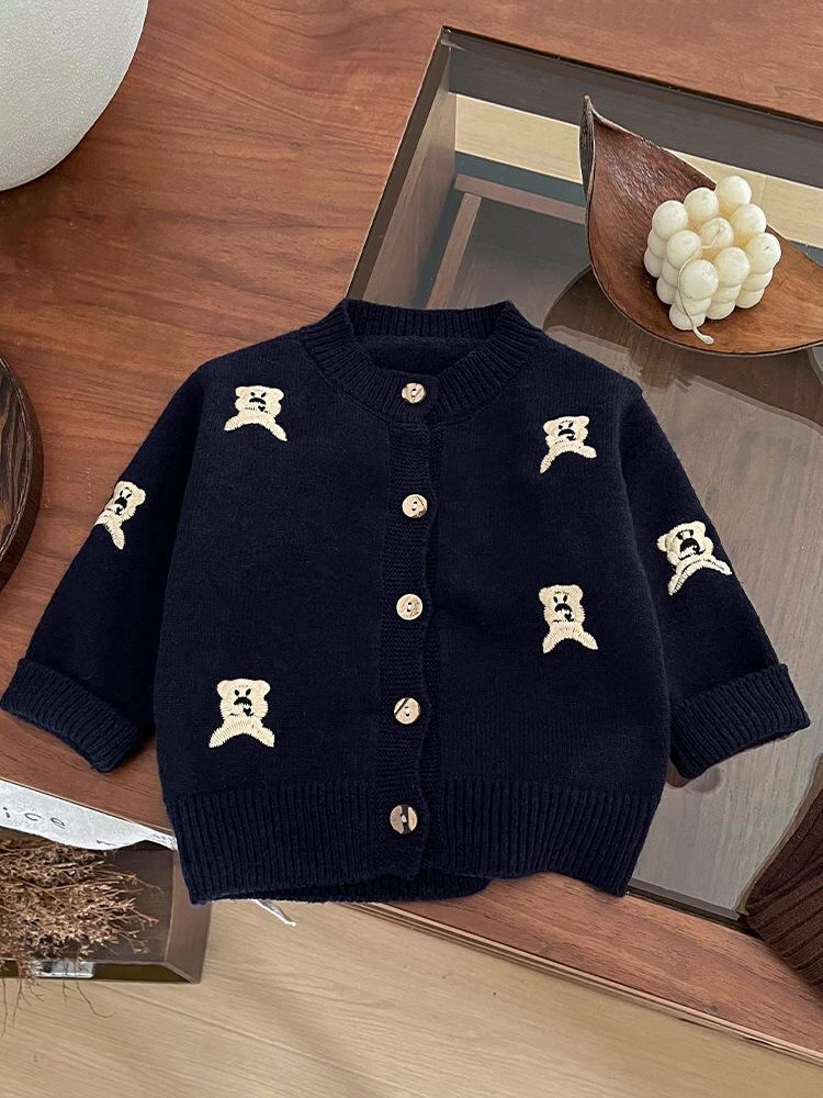 ニット カーディガン ベビー 男の子 春秋 かわいい クマ 刺繍 長袖 トップス 幼児 子供服 おしゃれ 普段使い 保育園 幼稚園 70 80 90 100
