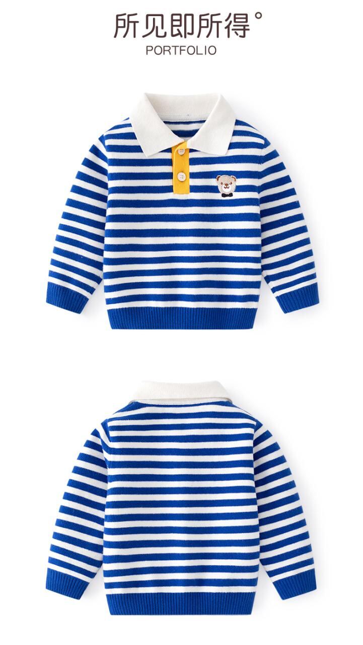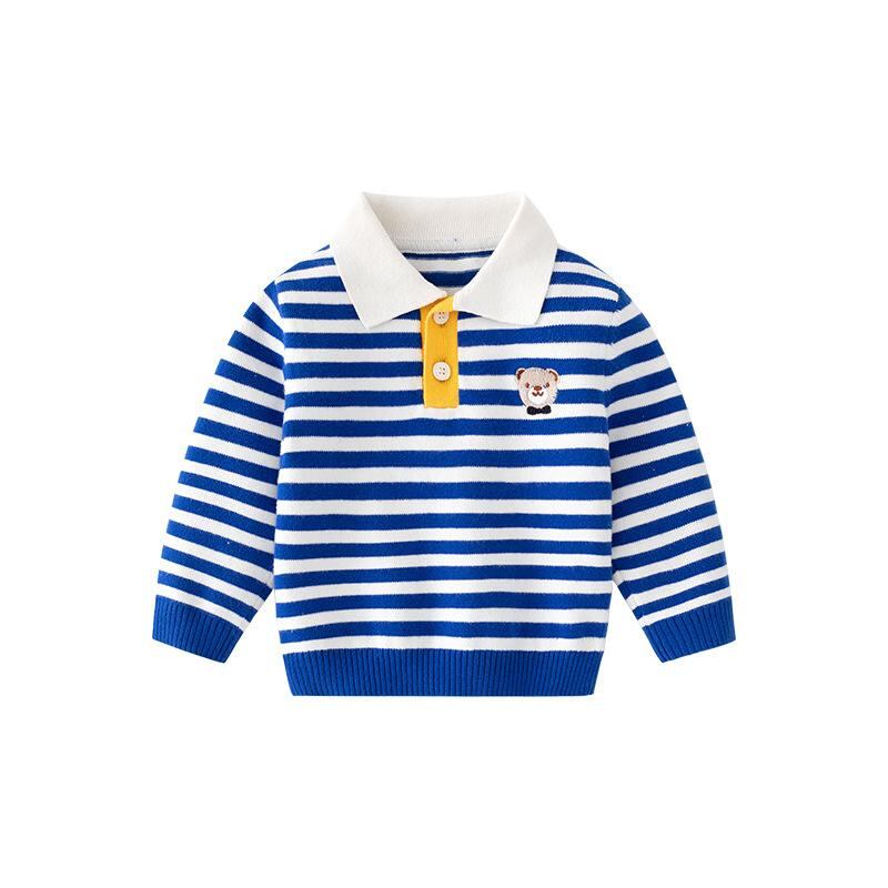 ニット ポロシャツ 子供服 長袖 秋冬 春秋 韓国風 ストライプ柄 男の子 女の子 カットソー トップス 普段着 部屋着 かわいい おしゃれ コットン