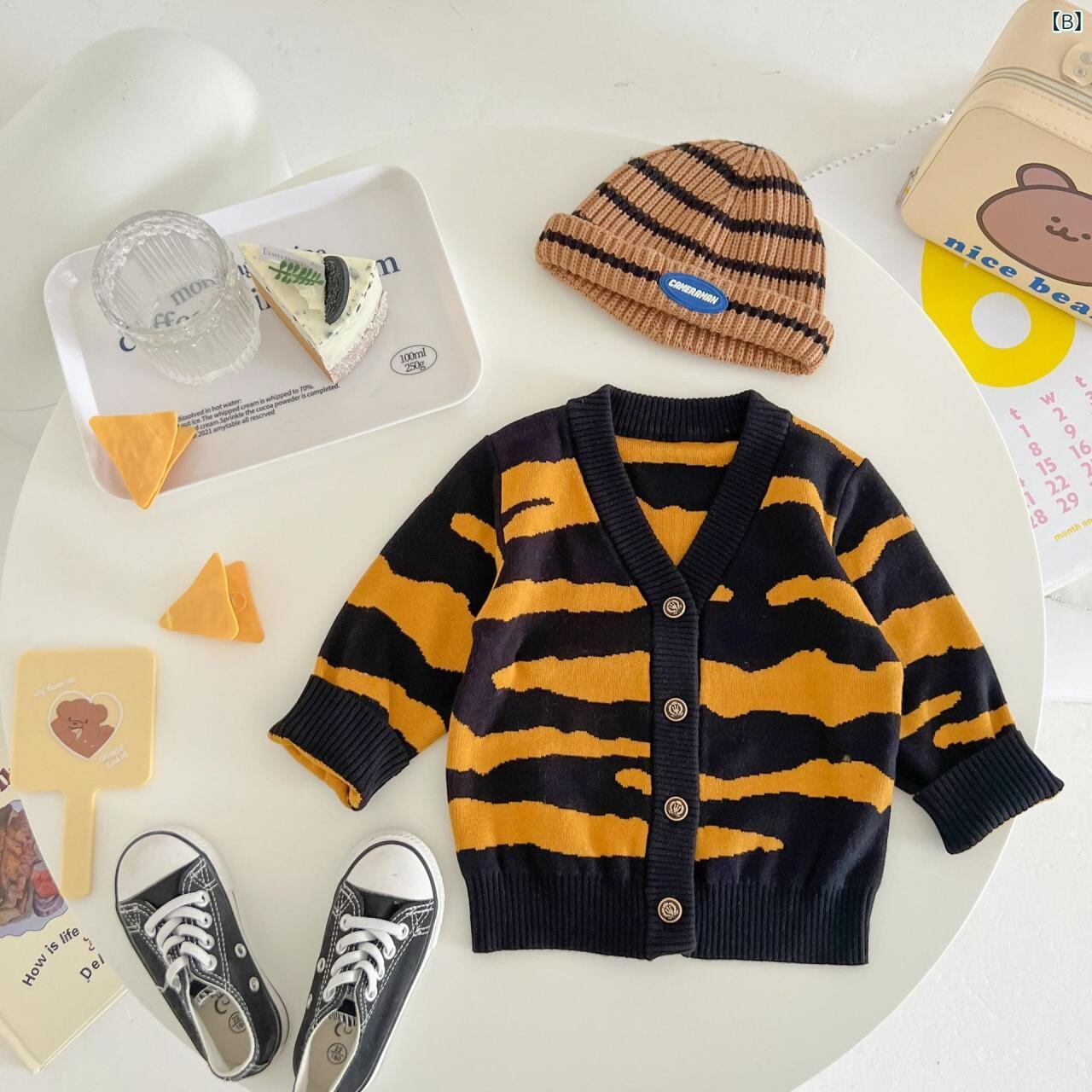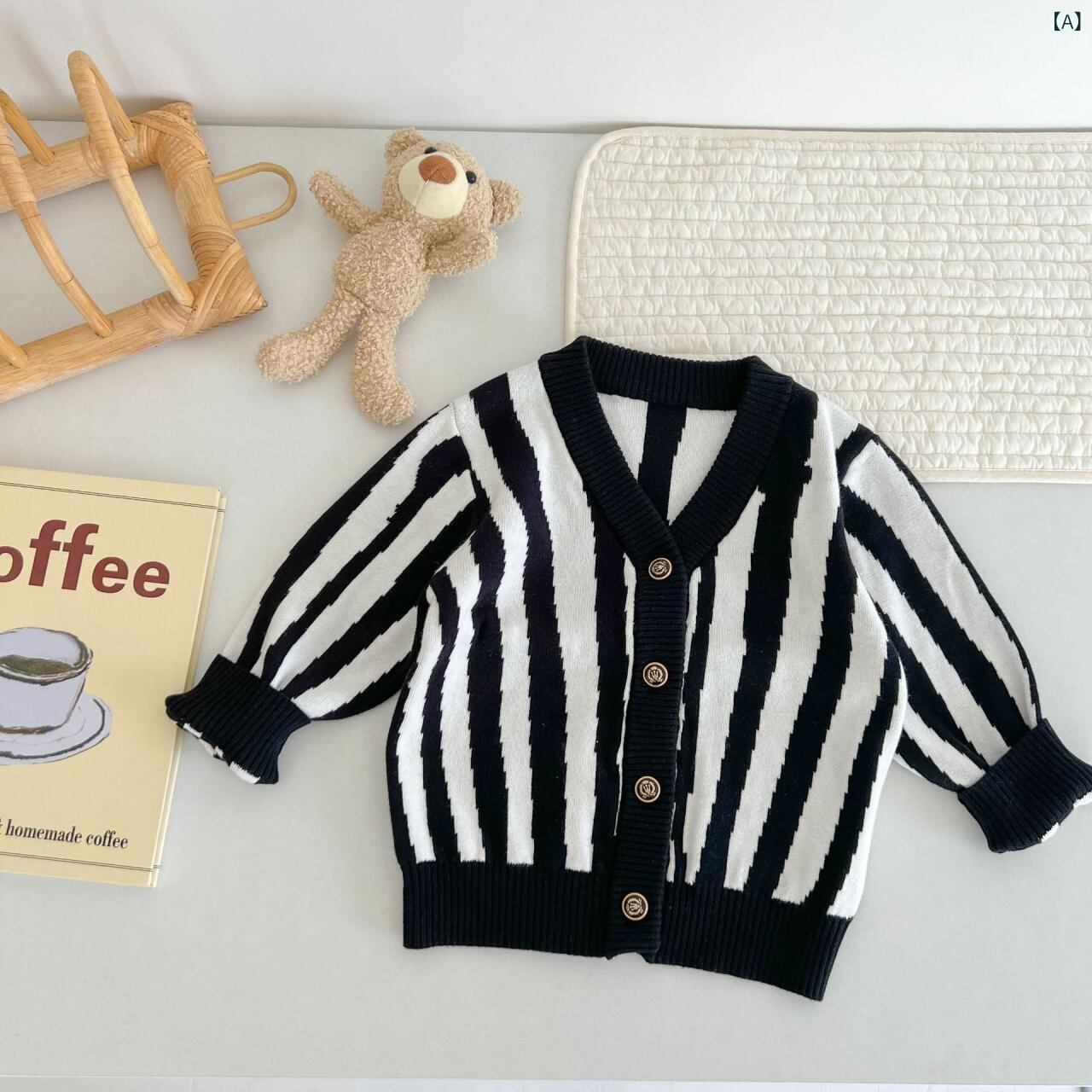 ベビー キッズ ニット カーディガン 秋冬 ボーダー柄 ゼブラ柄 コットン 長袖 かわいい おしゃれ 黒 白 黄色 66 73 80 90 100