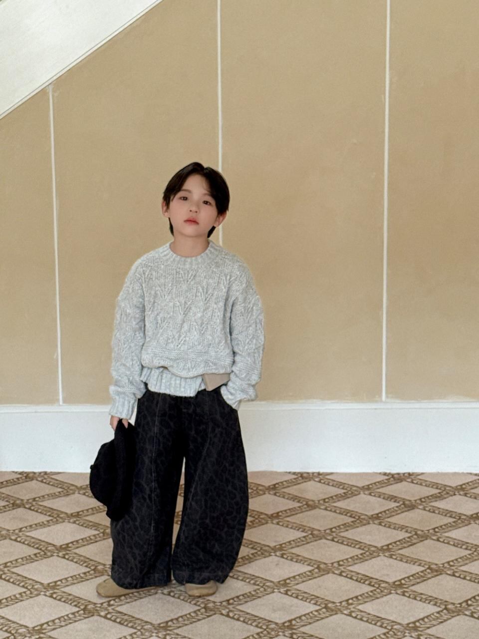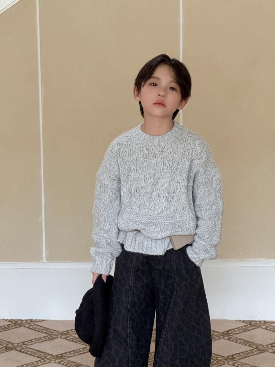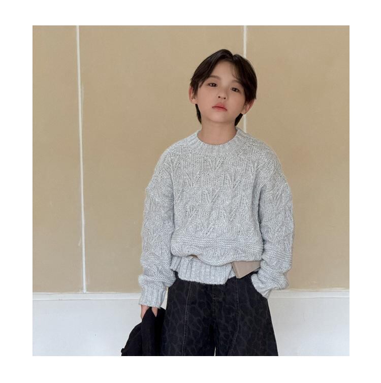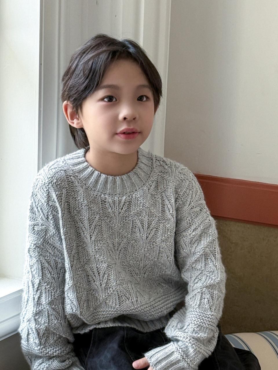 子供服 男の子 ニット セーター 春秋 麻の葉柄 クルーネック プルオーバー トップス 浅灰色 黒灰色 100cm 110cm 120cm 130cm 140cm 150cm 160cm コットン