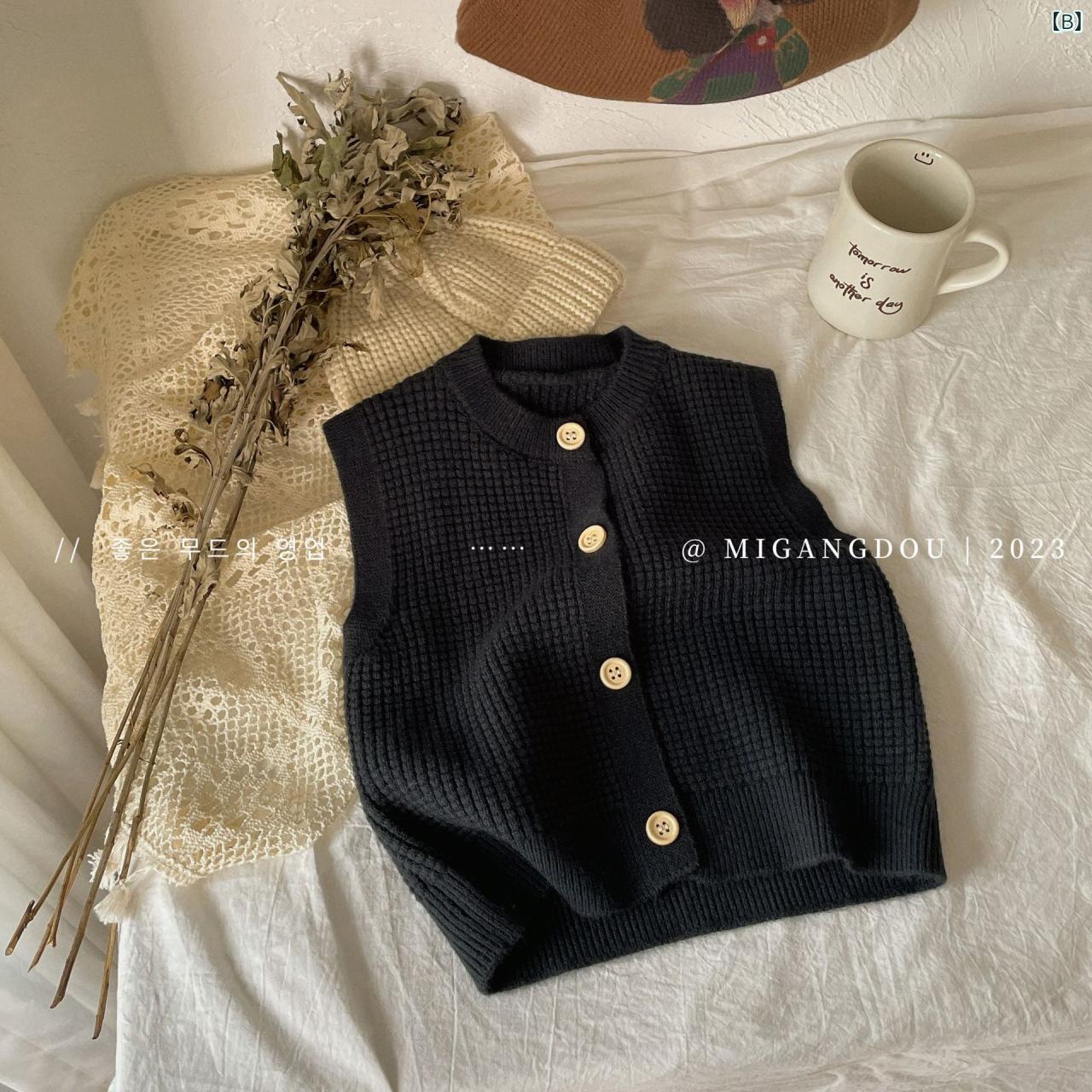 ニットベスト キッズ 男女兼用 秋服 子供服 毛糸 ベスト 無袖 トップス セーター 黄色 ダークグリーン 柔らかい かわいい 普段使い 通園 通学