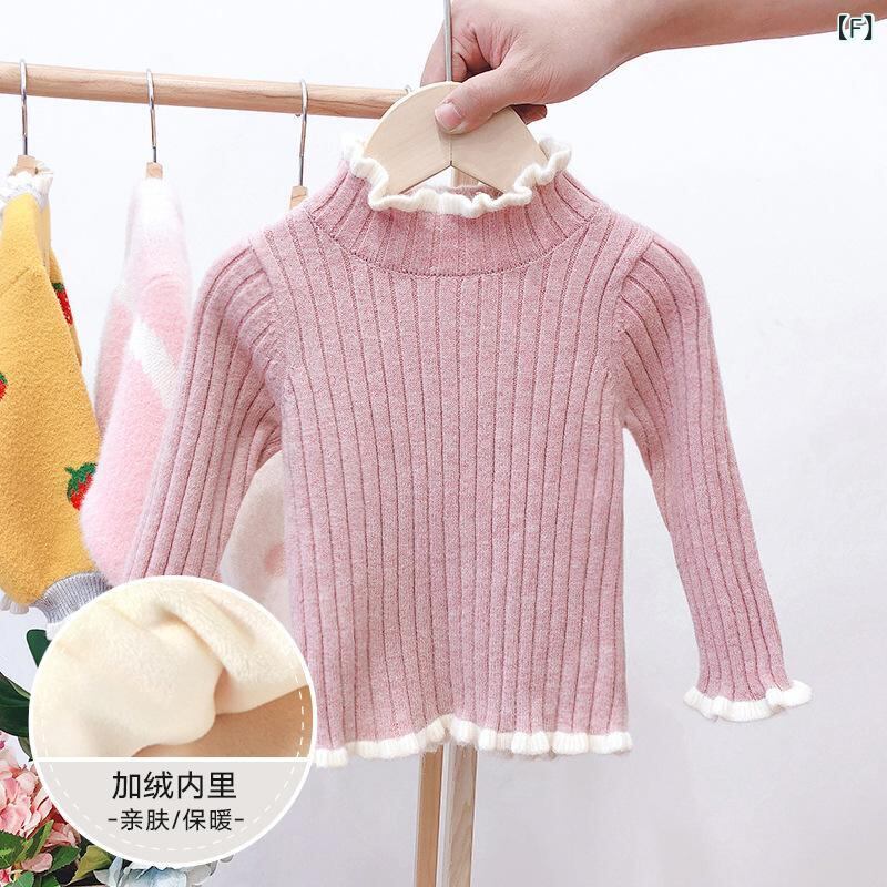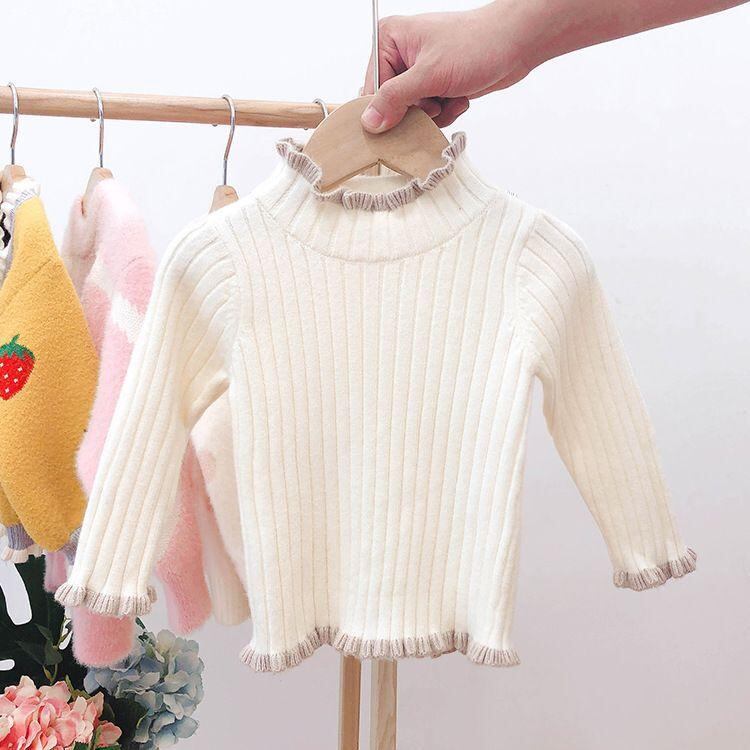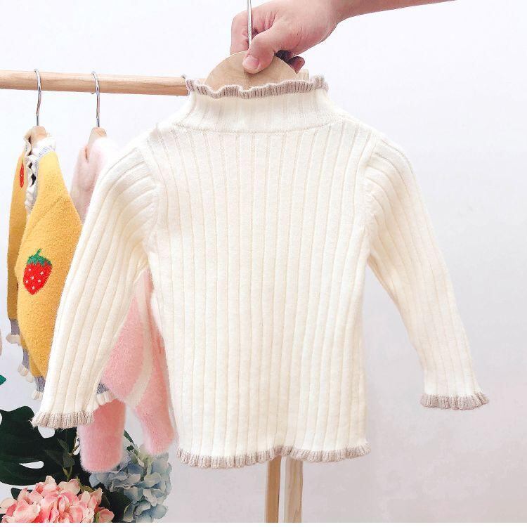ニット・セーター キッズ 長袖 秋冬 裏起毛 ラウンドネック 女の子 無地 普段使い かわいい 80 90 100 110 120