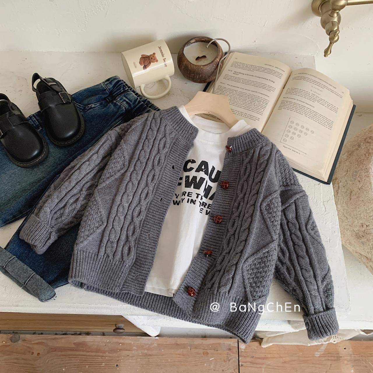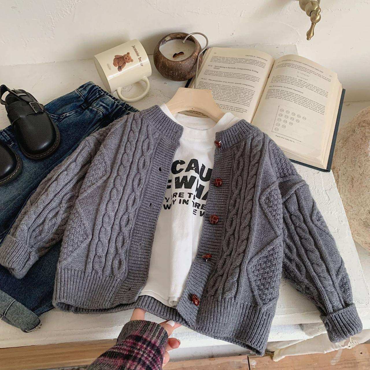 子供服 セーター 男の子 ニット カーディガン 春秋 韓国風 カジュアル 長袖 丸首 無地 普段着 アウター 90cm 100cm 110cm 120cm 130cm 140cm グレー