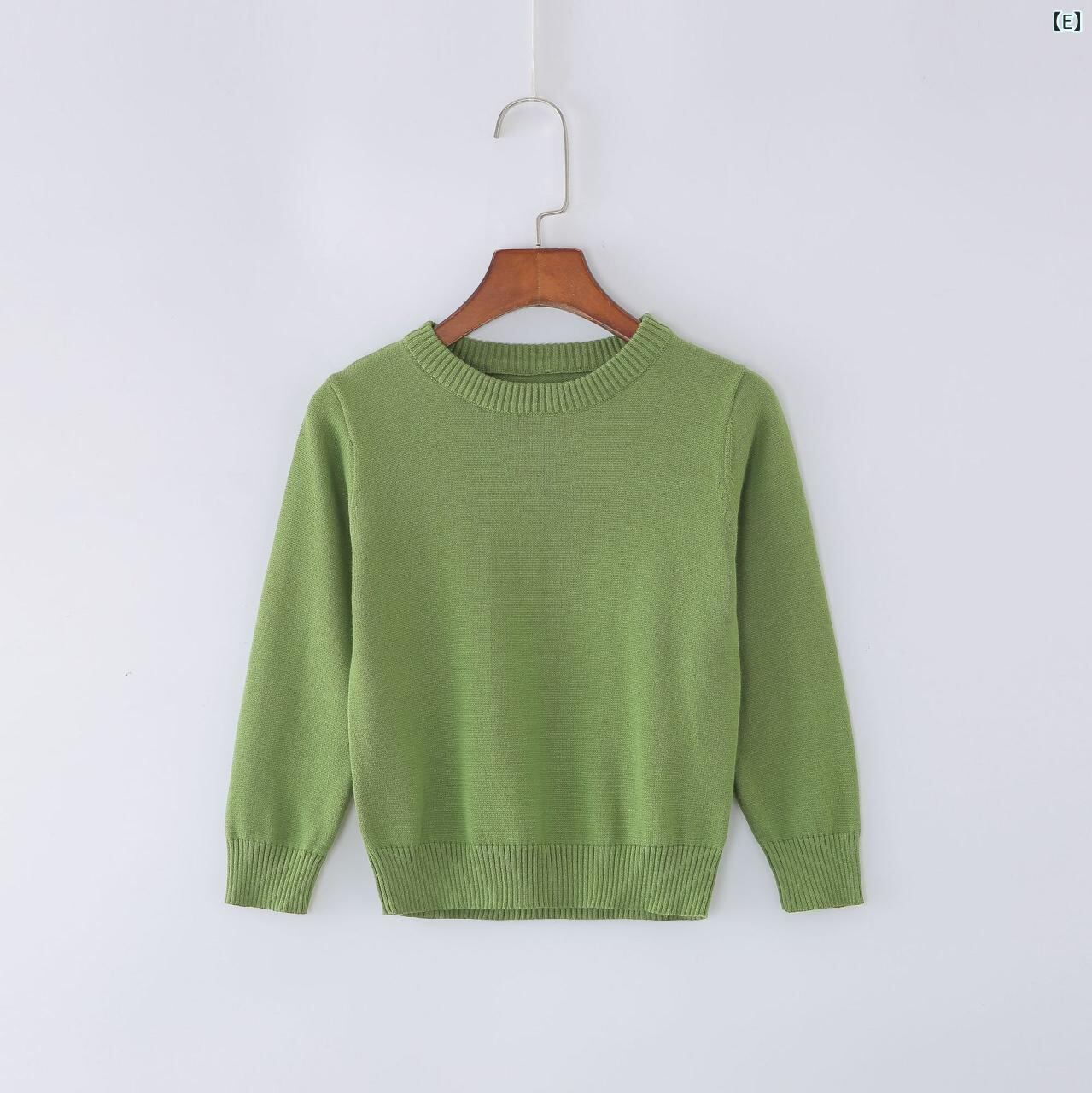 子供服 ニット セーター 秋冬 長袖 カットソー 男女兼用 無地 コットン トップス 柔らかい かわいい 韓国風 カジュアル 普段着 ベビー服 キッズ 白 赤 紫 グレー 緑 黒 青 ピンク系 黄色