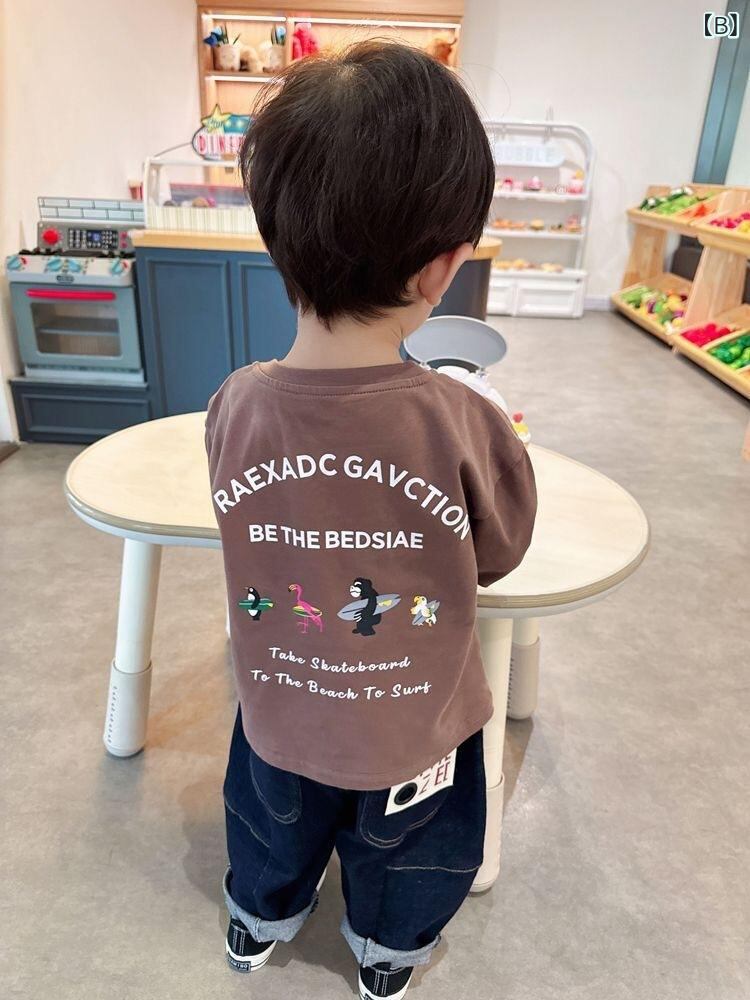 キッズ Tシャツ 長袖 カットソー 子供服 トップス コットン100% 吸湿 排汗 かわいい カートゥーン プリント 春秋 普段着 80cm 90cm 100cm 110cm 120cm 130cm 140cm ホワイト ピンク コーヒー色
