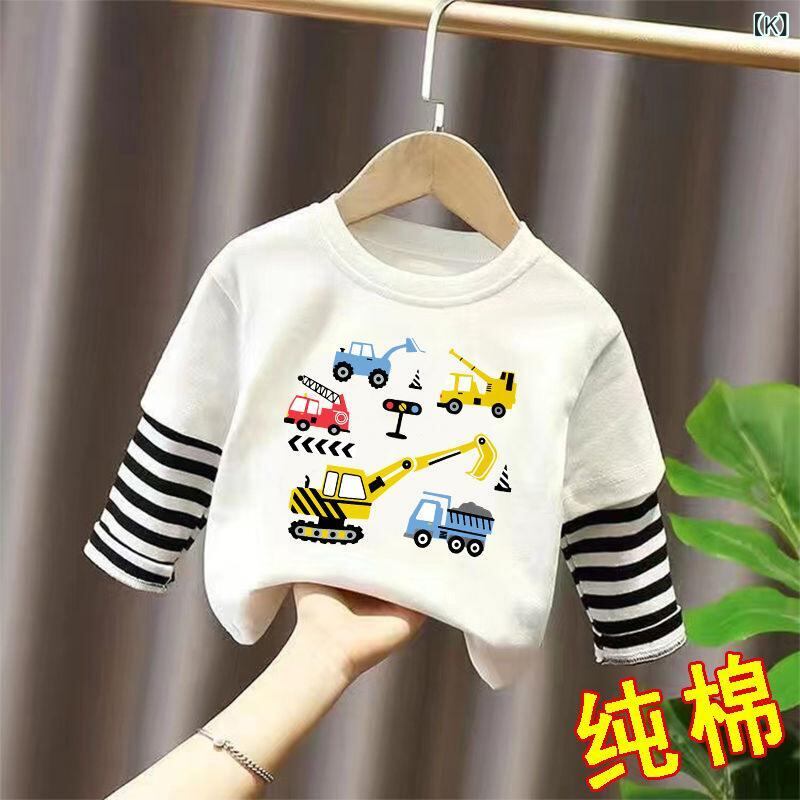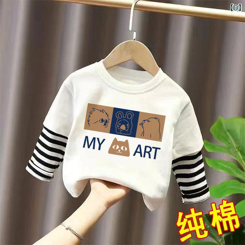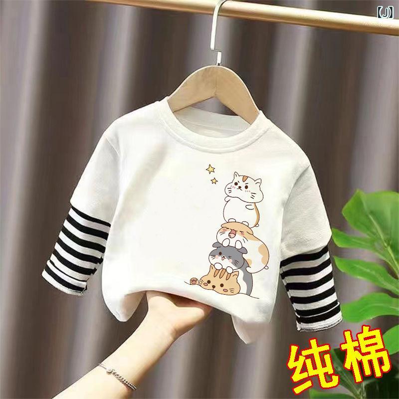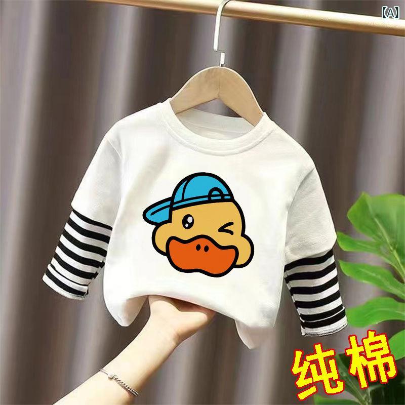 Tシャツ キッズ 長袖 子供服 男女兼用 春秋 綿100% カットソー トップス かわいい アヒル柄 クマ柄 ボーダー柄 吸汗