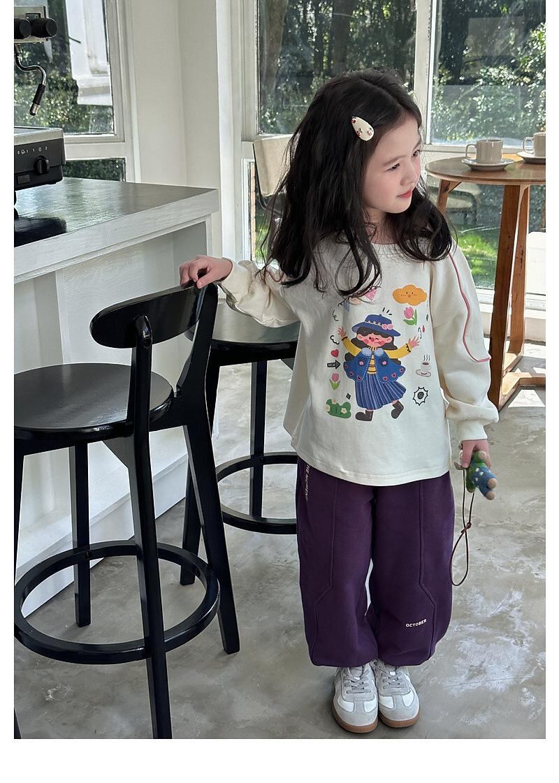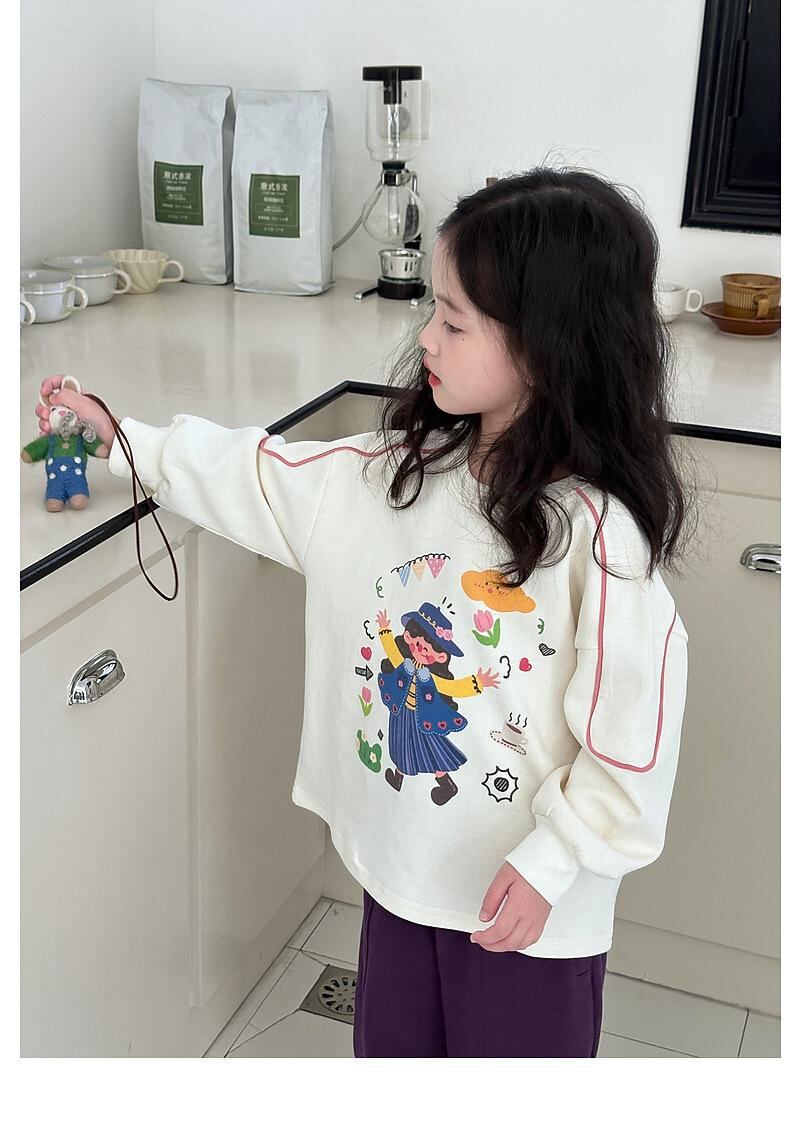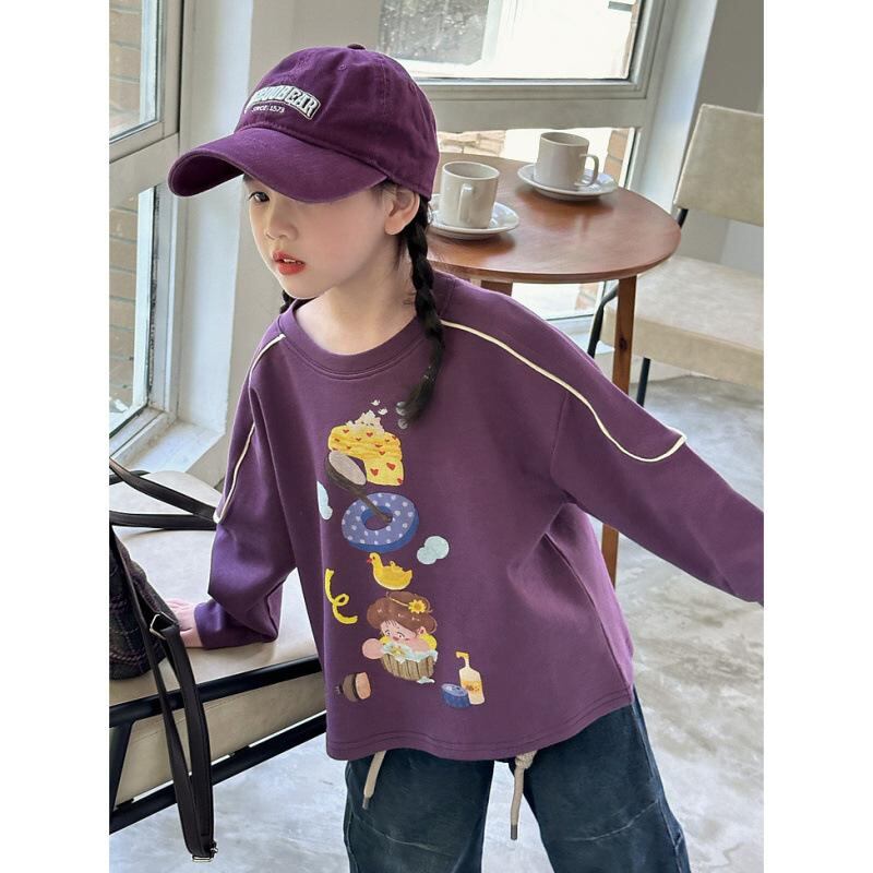 子供服 Tシャツ 女の子 長袖 トップス 春秋 かわいい プリント 切り替え 普段着 通学着 ピンク系 パープル ベージュ系 グリーン 綿