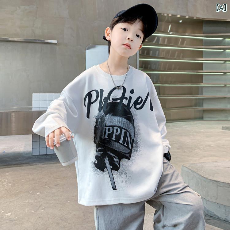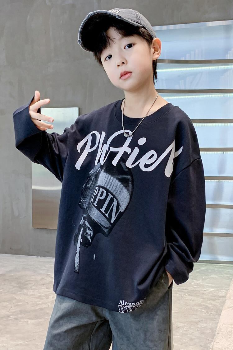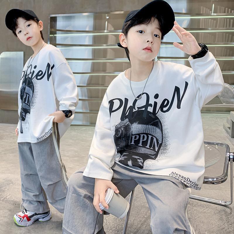 キッズ Tシャツ 男の子 子供服 長袖 春秋 ストリート ダンス スポーツ 普段使い ゆったり 綿100% グレー ホワイト