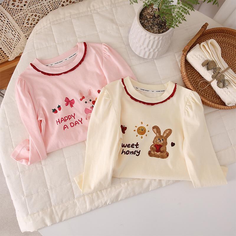 Tシャツ キッズ 女の子 子供服 長袖 綿 花柄 フリル 80cm 90cm 100cm 110cm 120cm 130cm 140cm 150cm 春秋 かわいい ガールズ トップス カットソー