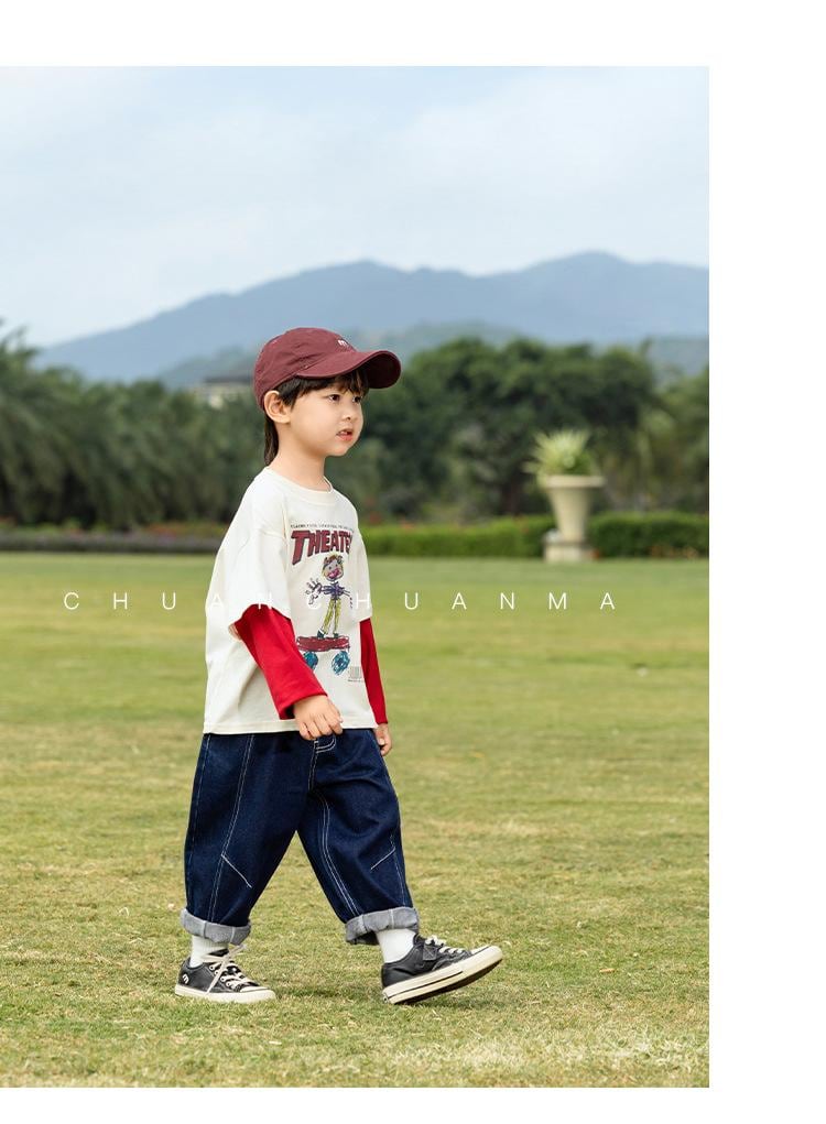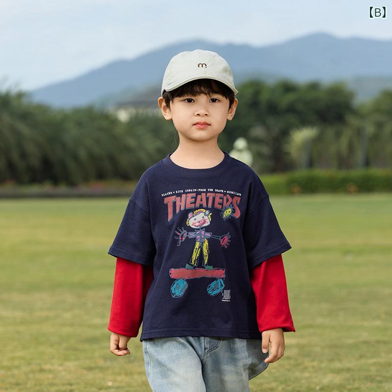 子供服 Tシャツ 長袖 春秋 男女兼用 カットソー 韓国風 カートーン プリント 切り替え 保温