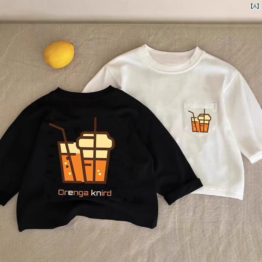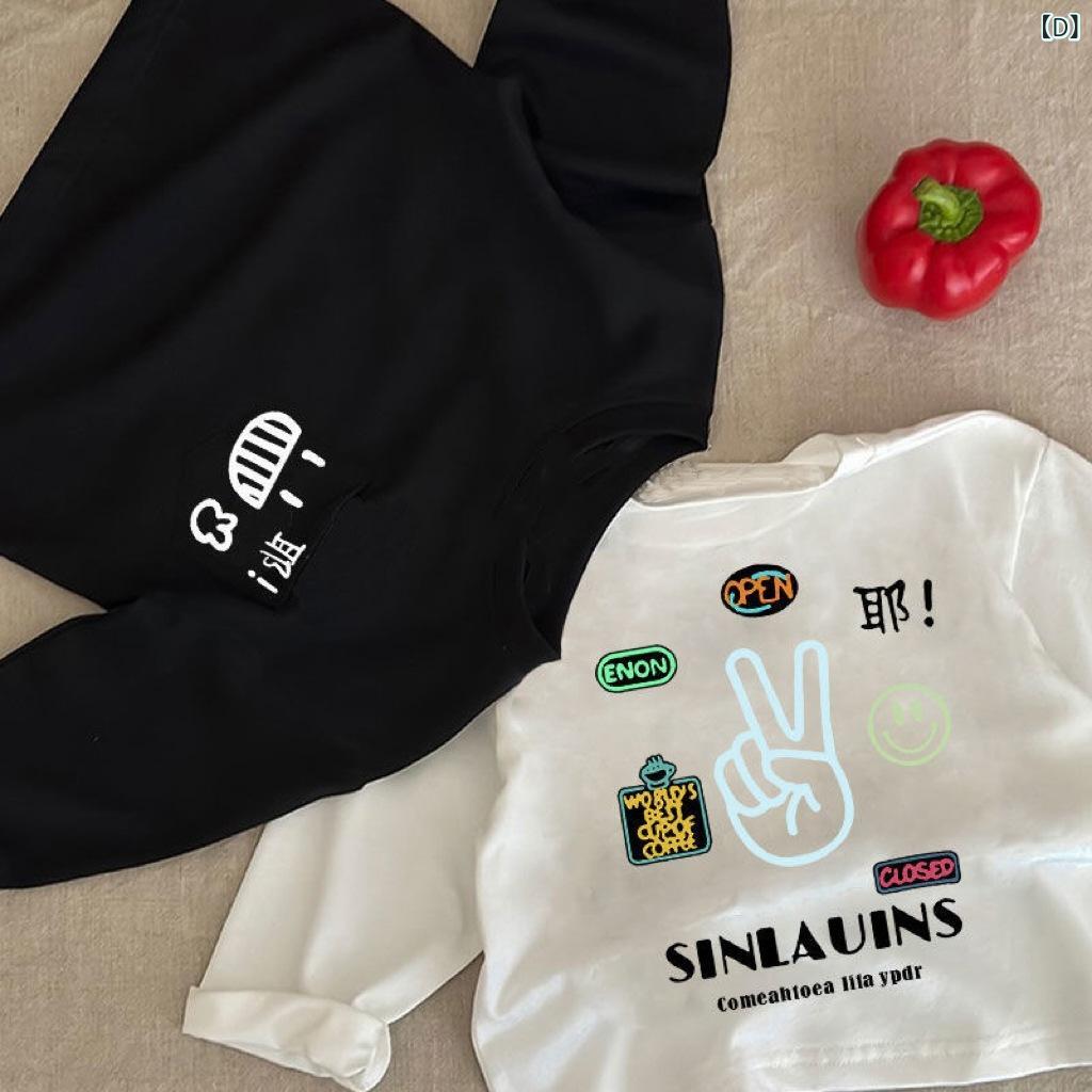 子供用Tシャツ 長袖 春秋 純綿 ポケット カートゥーン プリント トップス カットソー かわいい 吸湿速乾 普段使い 通園 通学 ブラック ホワイト系
