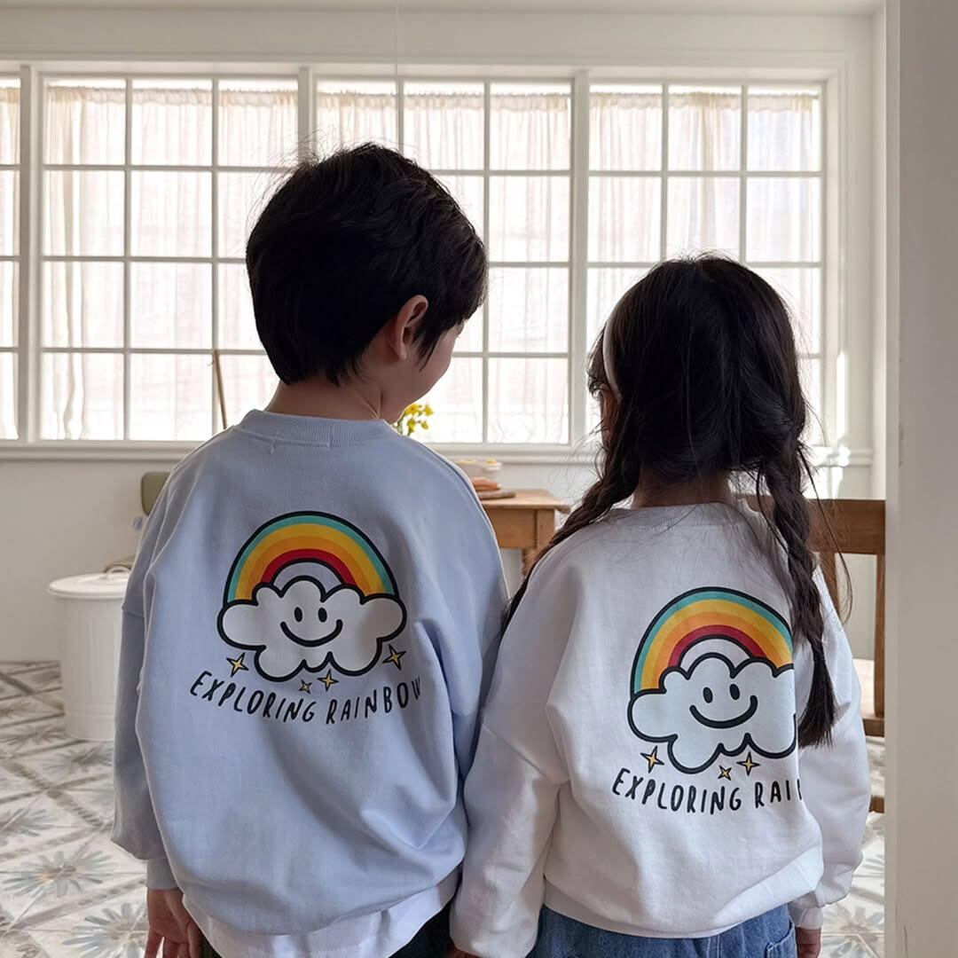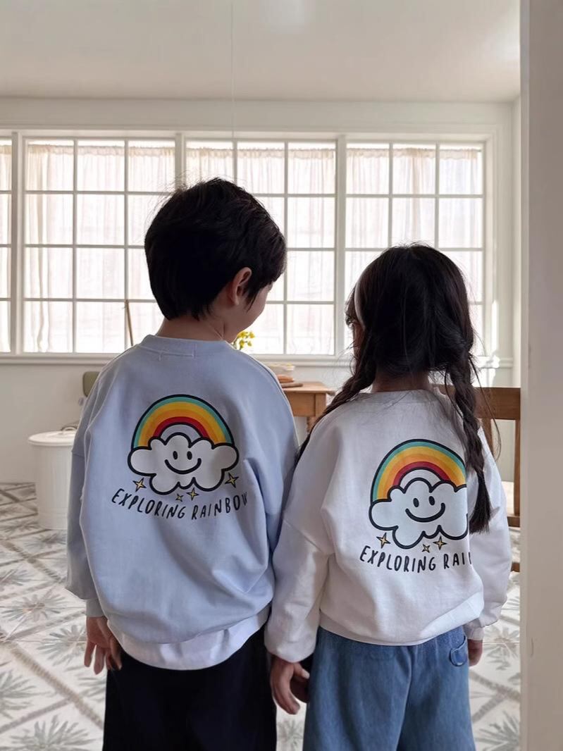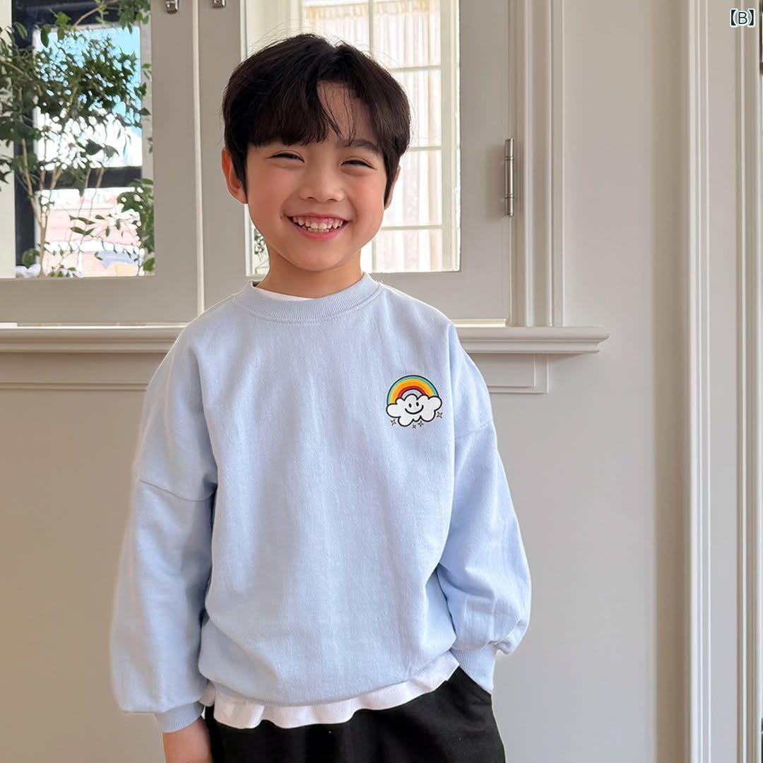 子供用Tシャツ 長袖Tシャツ 男児トップス 春秋 ベビー 乳幼児 虹柄プリント コットン 吸湿速乾 80 90 100 110 120cm