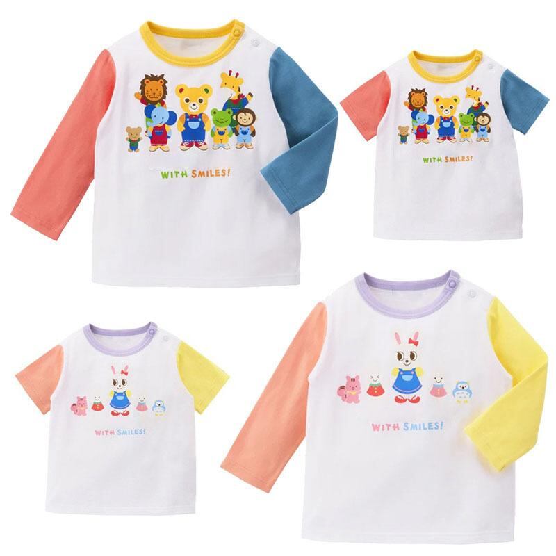 子供服 Tシャツ 長袖 春秋 男女兼用 日系 かわいい 熊 ウサギ キャラクター プリント 切り替え トップス 普段着