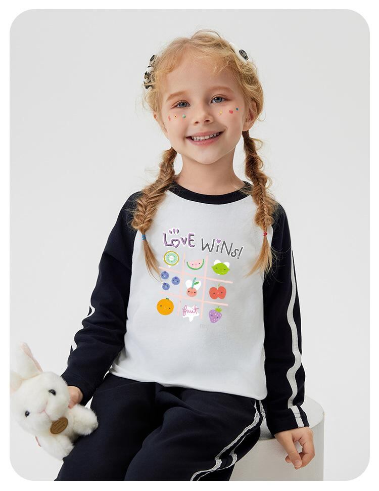 子供服 長袖Tシャツ 女の子 幼児 春物 トップス プリント柄 丸首 カットソー ベビー服 綿混紡