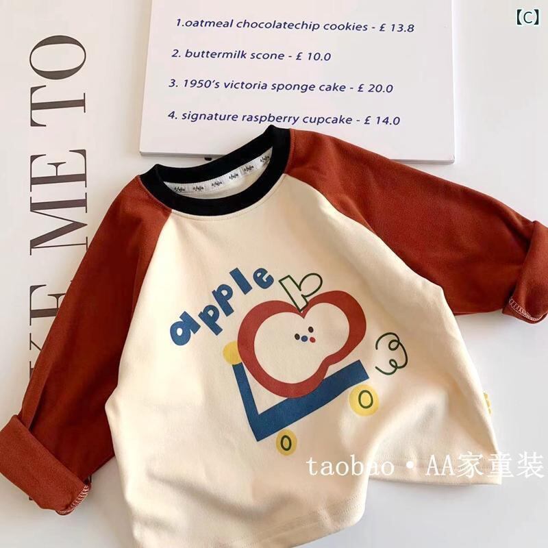 Tシャツ 女の子 長袖 子供服 春秋 綿100% トップス カットソー かわいい プリント ピンク系 ブラック ブラウン グリーン 80 90 100 110 120 130 140 150
