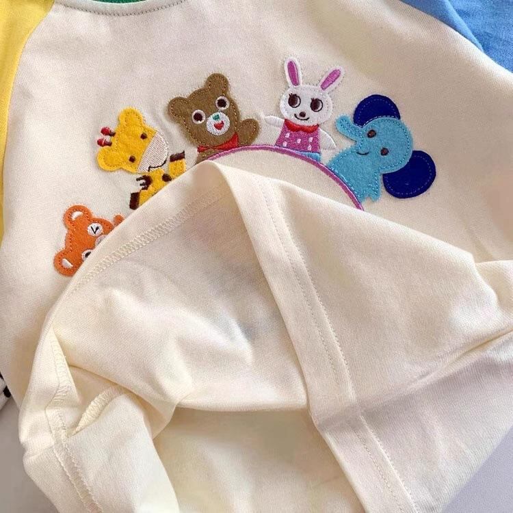 Tシャツ キッズ 男の子 長袖 春秋 トップス 子供服 切り替え カジュアル アニマル プリント 刺繍 コットン