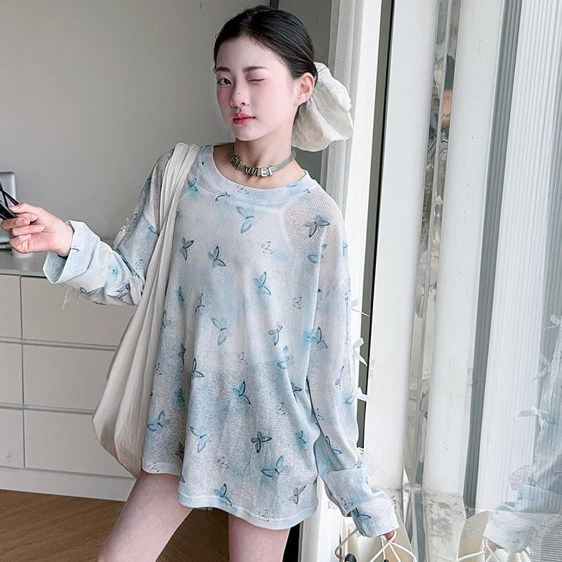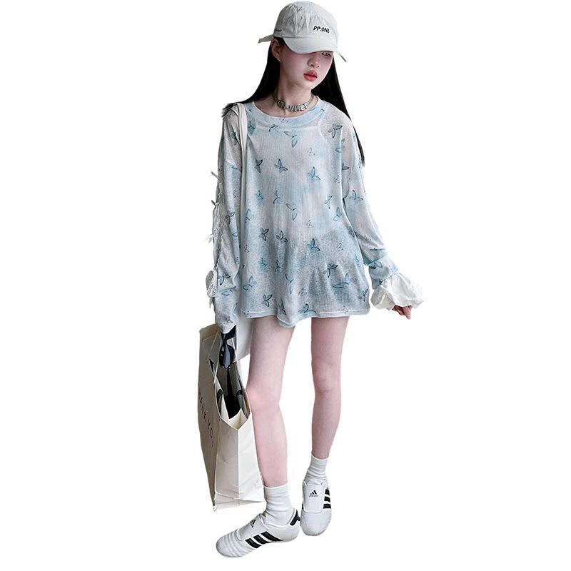 Tシャツ ガールズ 春夏 薄手 接触冷感 バタフライプリント カジュアル ゆったり トップス 120 130 140 150 160 170