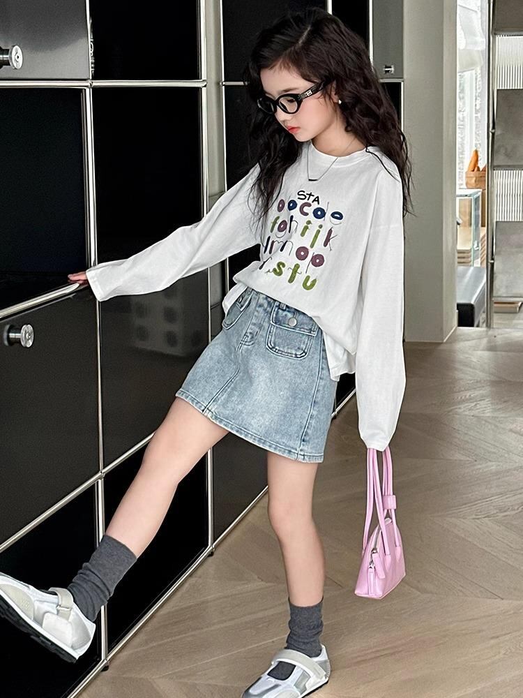 子供服 Tシャツ 女の子 春秋 長袖 大童 トップス カットソー 綿100% 韓国風 かわいい ガールズ 普段着 通学着 白