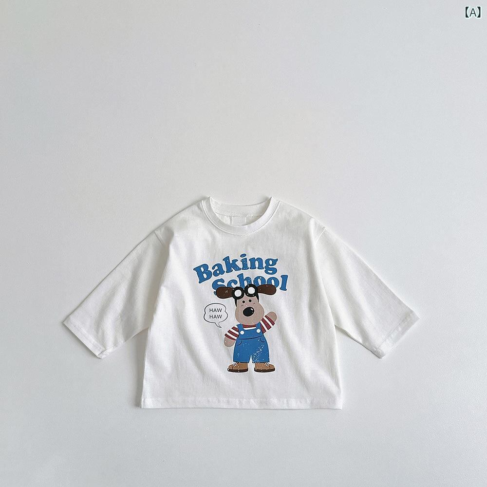 子供服 長袖Tシャツ かわいい 小犬 プリント トップス 春秋 男女兼用 吸湿速乾 80cm 90cm 100cm 110cm 120cm