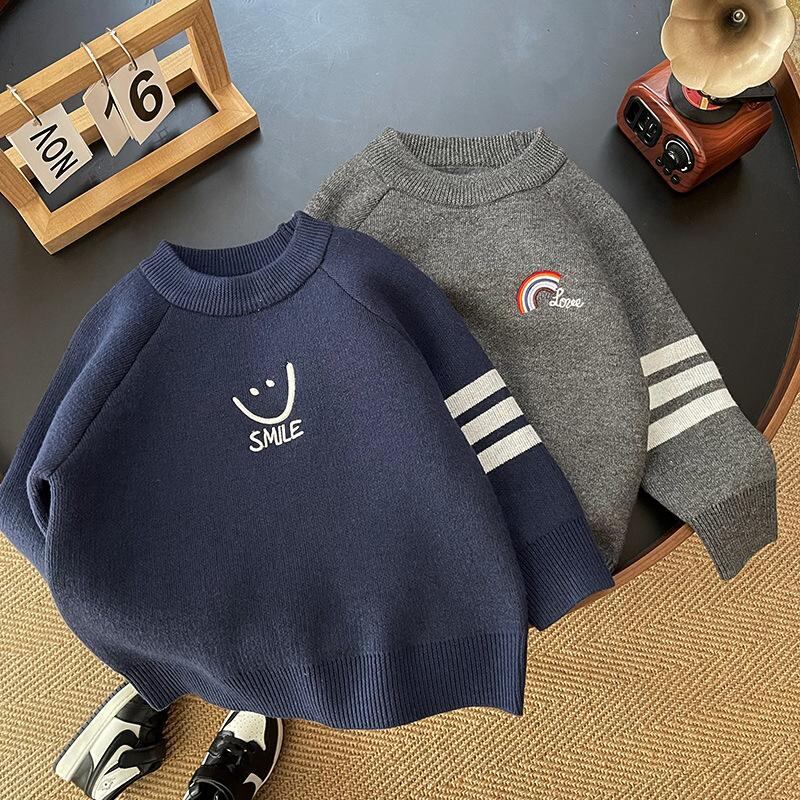 ニット 子供服 男の子 ニットセーター 厚手 冬 トップス 長袖 幼児 園児 ベビー あったか グレー 紺色 ボーダー カートーン