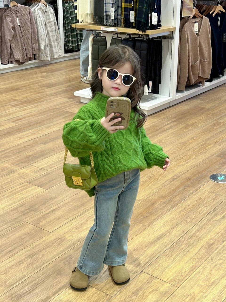 子供服 ニット セーター 秋冬 女の子 長袖 トップス 2歳 3歳 4歳 5歳 6歳 7歳 ボーダー柄 プルオーバー 厚手 普段着 かわいい 韓国風 緑