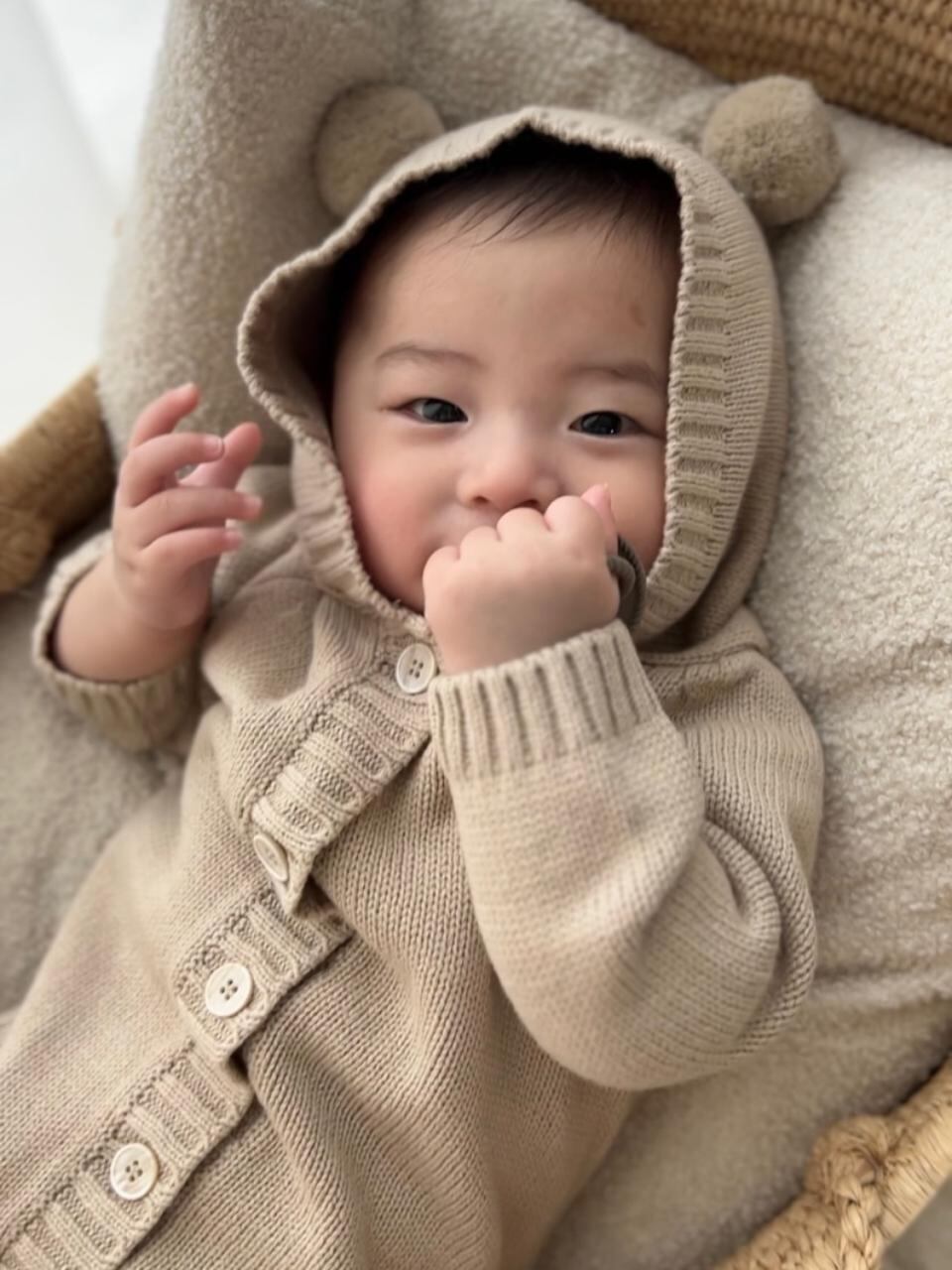 ベビー服 ニット ロンパース 春秋 長袖 コットン 小熊 くま かわいい 新生児 赤ちゃん 乳幼児 男女兼用 カバーオール ベビーウェア アイボリー ベージュ