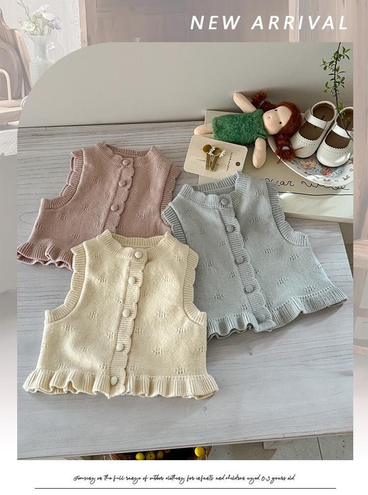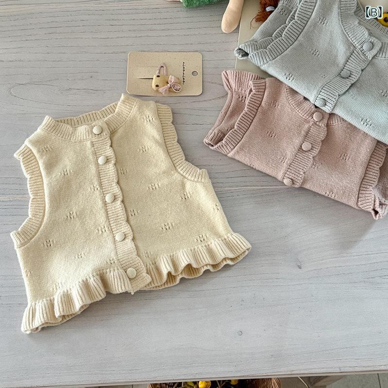 ベビー服 ニット ベスト 女の子 春秋 セーター カーディガン かわいい 赤ちゃん 幼児 子供服 73 80 90 100cm ピンク ブルー ベージュ