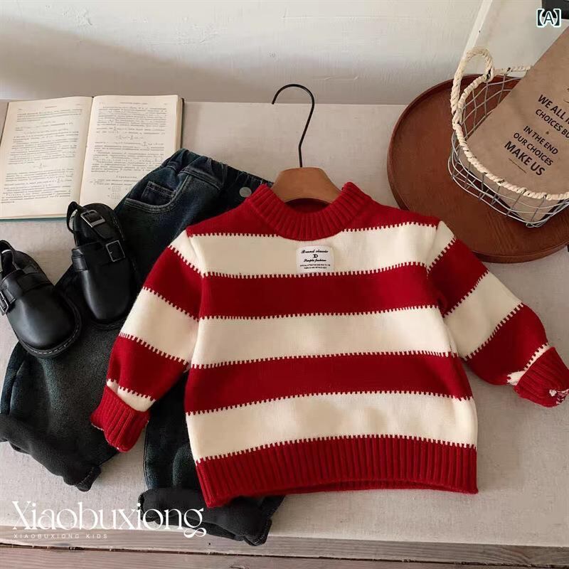 子供用ニット クリスマス セーター 冬 ベビー あったか カットソー 長袖 ボーダー 男の子 女の子 かわいい おしゃれ 普段着