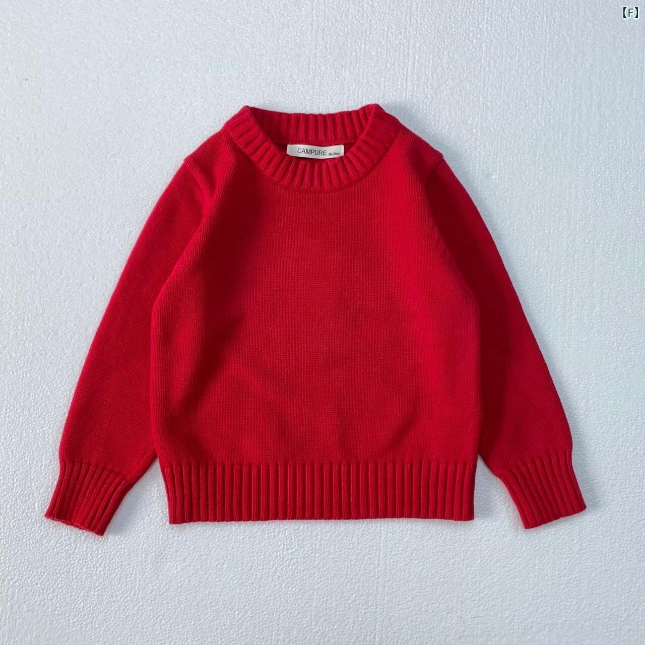 子供用ニット トップス 秋冬 男女兼用 幼児 無地 プルオーバー カットソー 韓国風 かわいい 保温 柔らかい 綿100% 長袖 80cm 90cm 100cm 110cm 120cm 130cm 140cm 白 ピンク 黄色 チョコ 緑 赤 杏色 黒