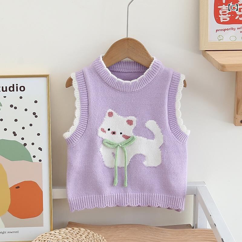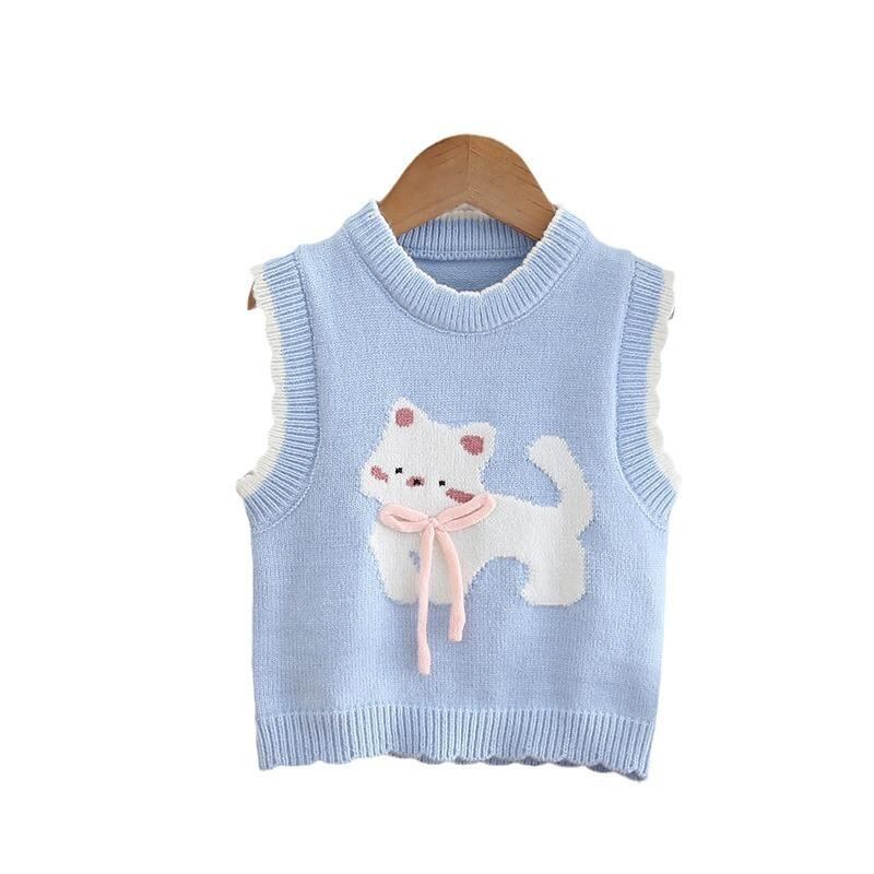 ベビー服 ニットベスト 春秋 女の子 猫柄 セーター ベスト 幼児 かわいい ノースリーブ トップス 80 90 100 110 120 130cm