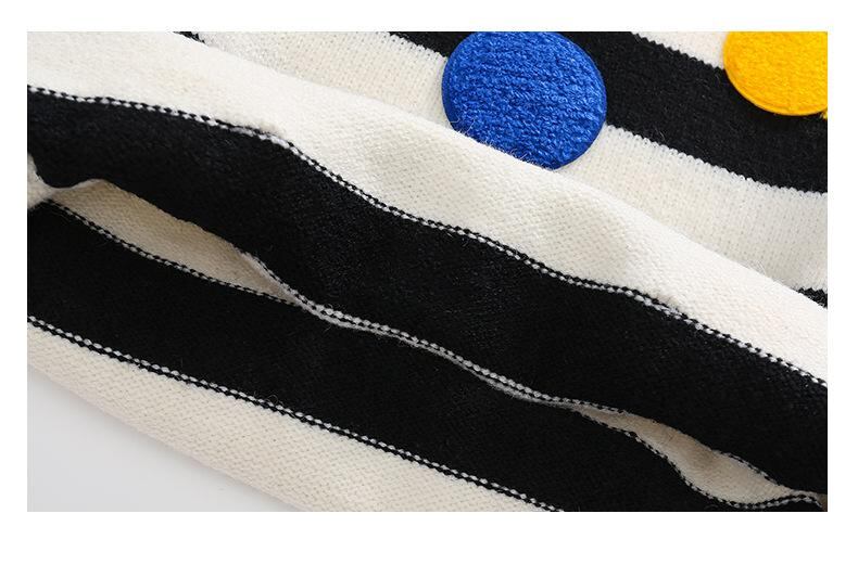 子供服 セーター 女の子 ニット トップス 春秋 長袖 裏起毛 カットソー かわいい ボーダー 黒白 90 100 110 120 130 140