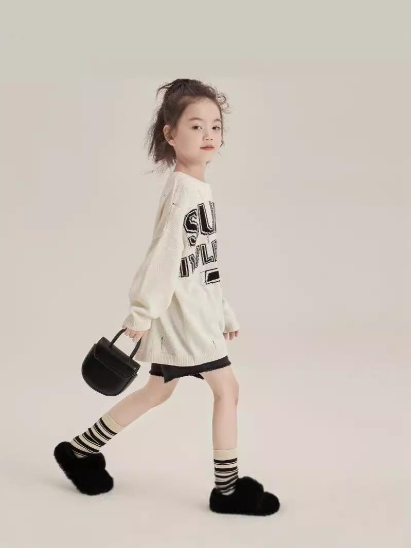 ニット セーター 女の子 子供服 トップス 長袖 秋冬 韓国風 ゆったり かわいい アルファベット ダメージ加工 90 100 110 120 130 140