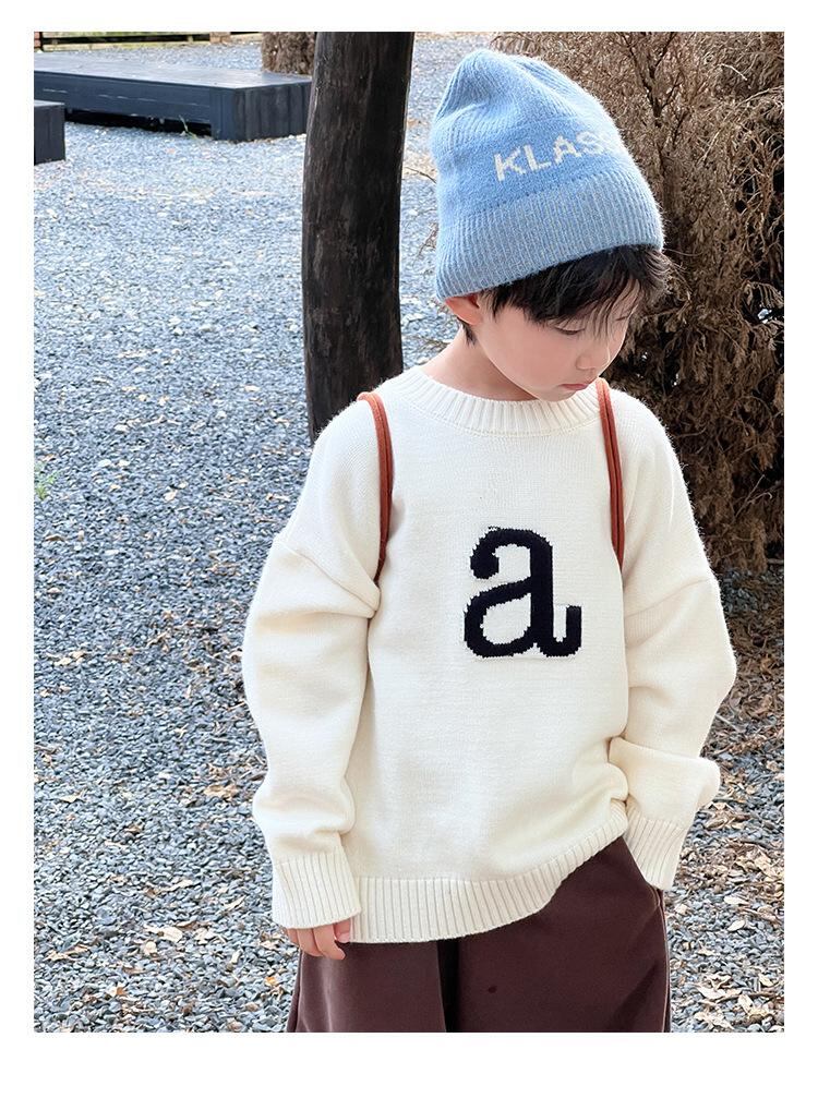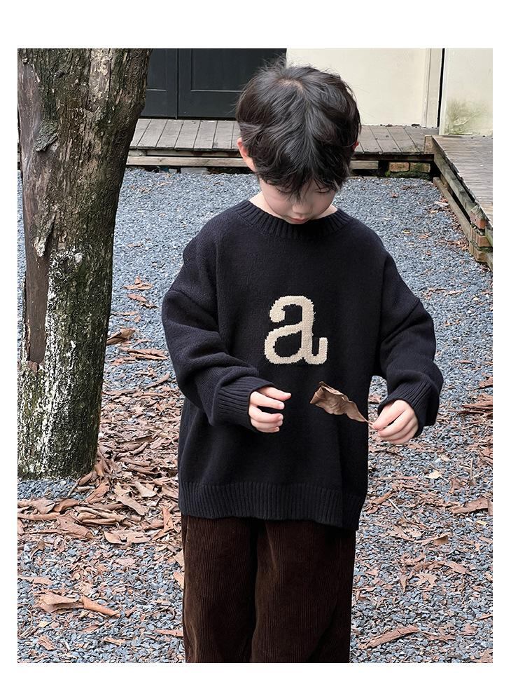 子供服 ニット・セーター 男の子 秋冬物 長袖 丸首 プルオーバー 普段着 おしゃれ ブラック イエロー系 アイボリー 全6サイズ