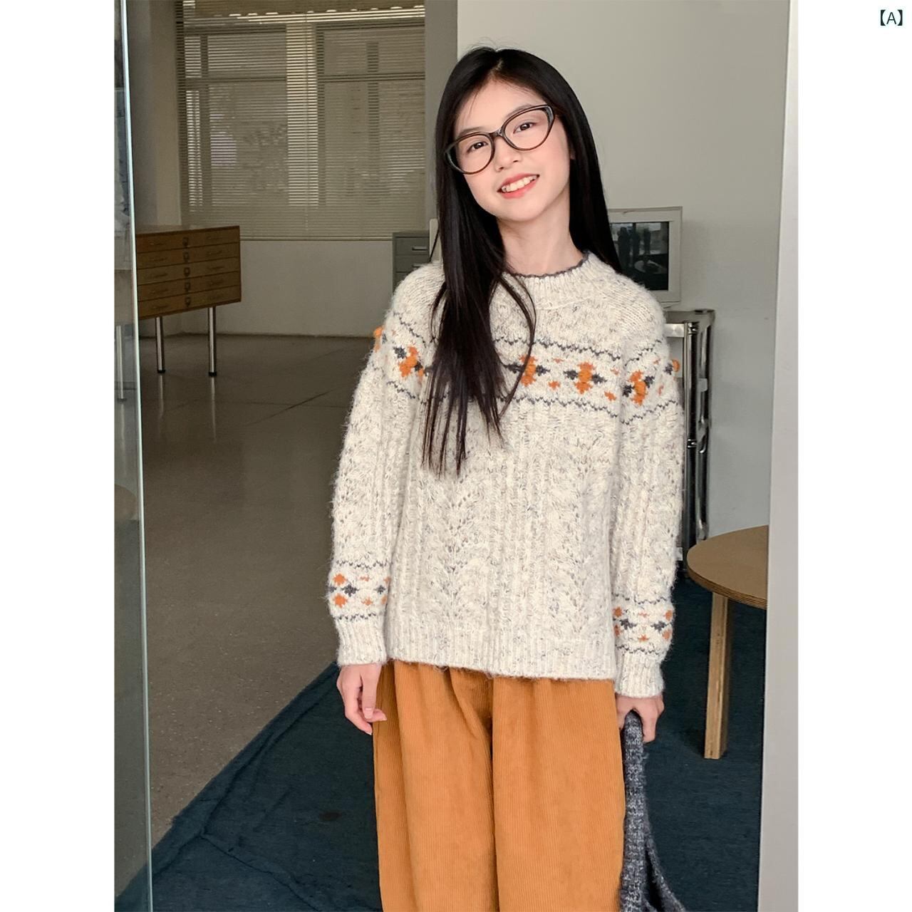 ニット キッズ 女の子 フェアアイル柄 セーター 秋冬 韓国風 子供服 厚手 ニット トップス かわいい ガーリー ゆったり 普段使い