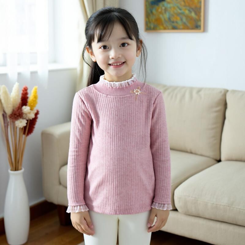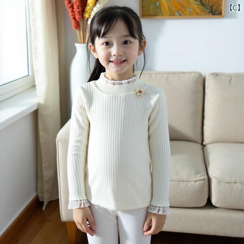 ニット・セーター ガールズ 秋冬 子供服 韓国風 長袖 トップス カットソー 高 伸縮性 普段着 ミルクティー ベージュ