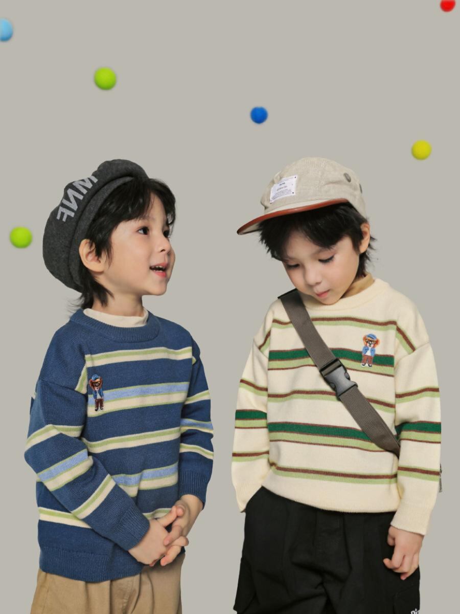 子供服 セーター 冬 あったか ボーイズ ストライプ 長袖 ニット 厚手 秋冬 A類 ガールズ プルオーバー トップス 綿 柔らかい かわいい おしゃれ 普段着 部屋着 防寒